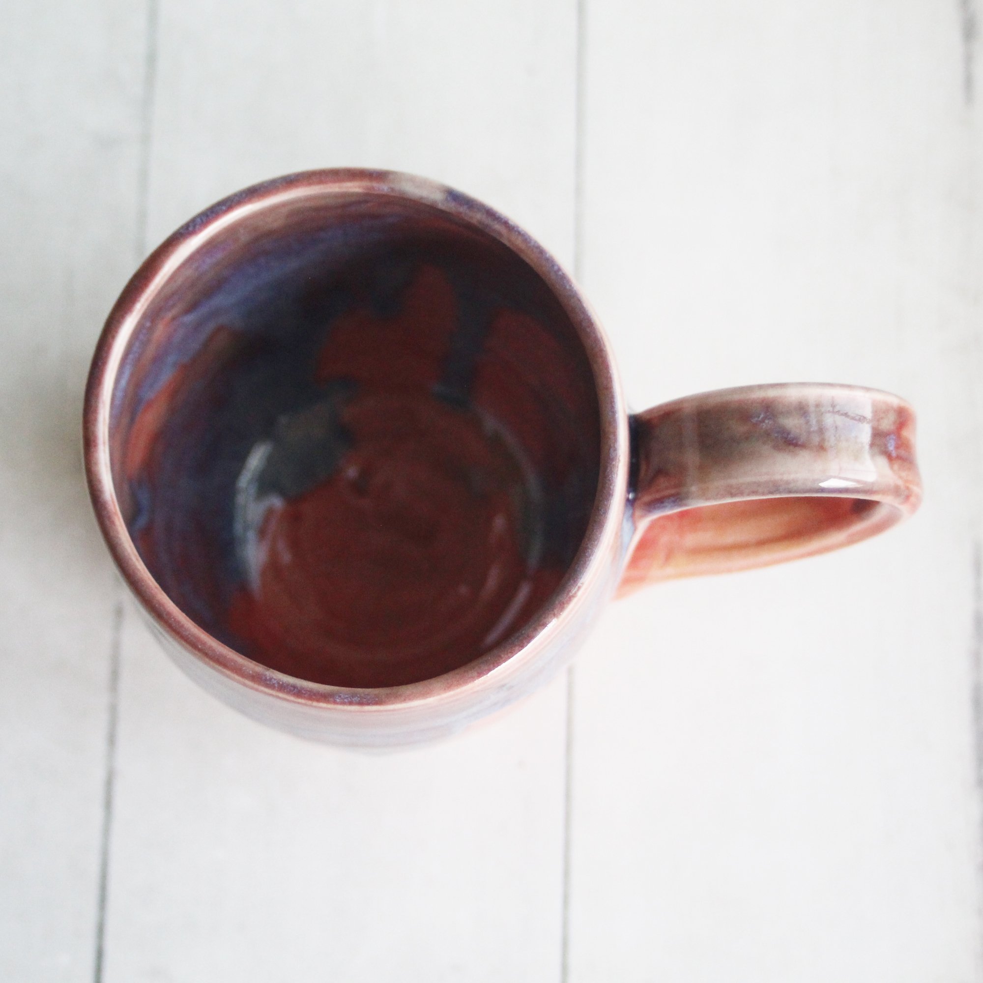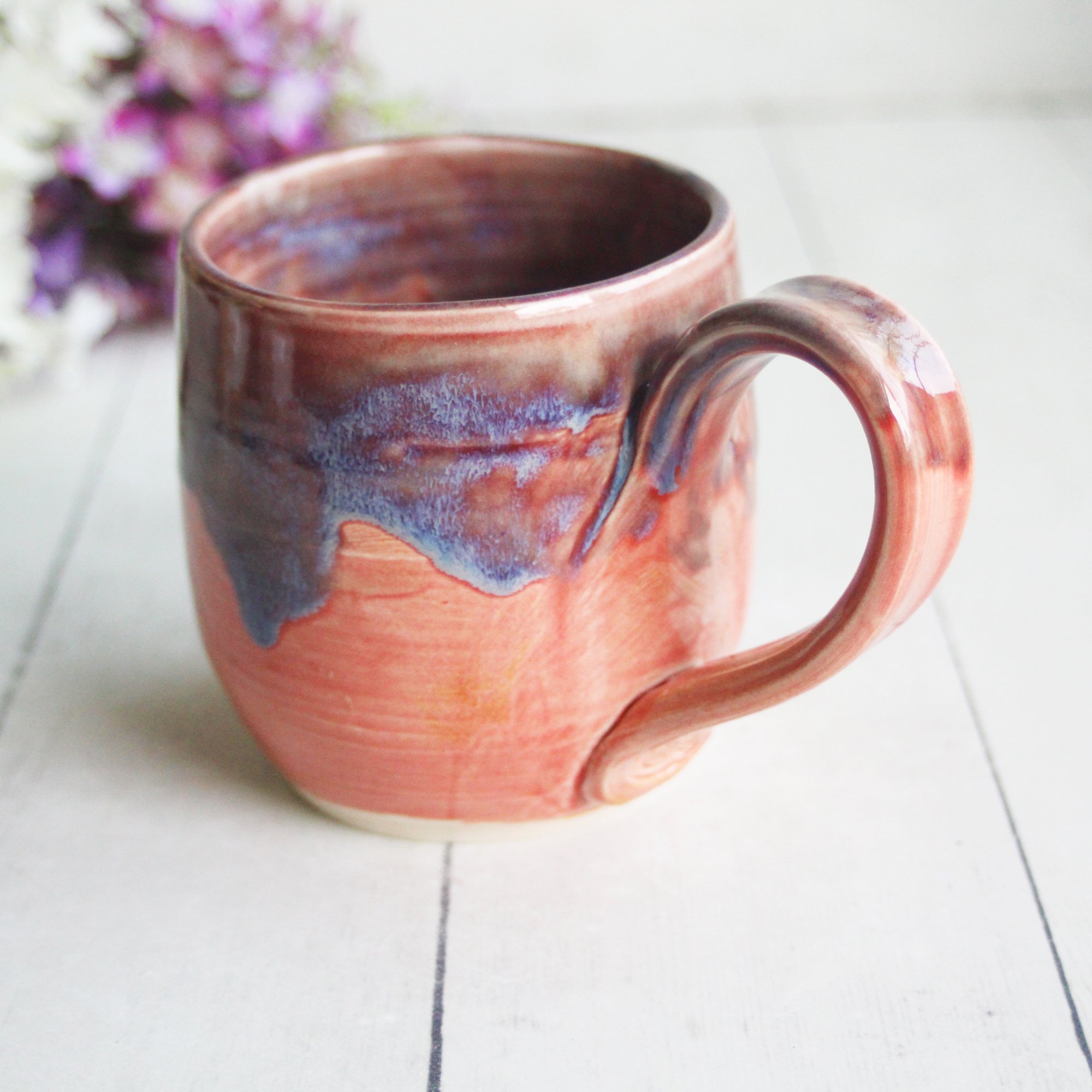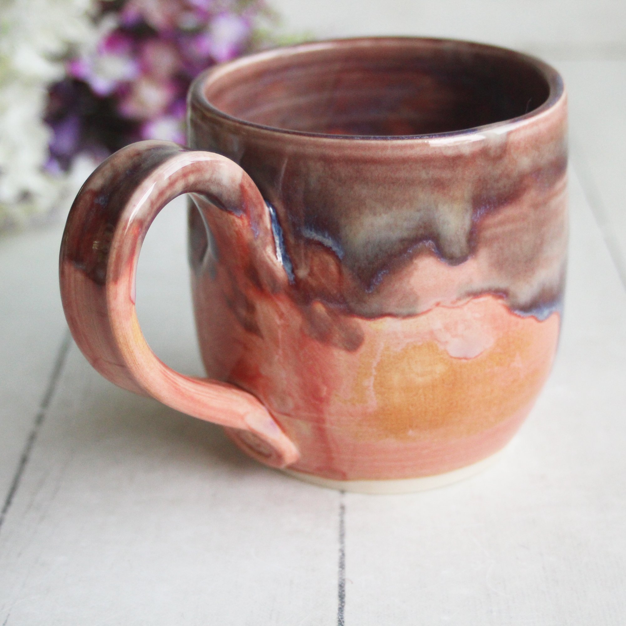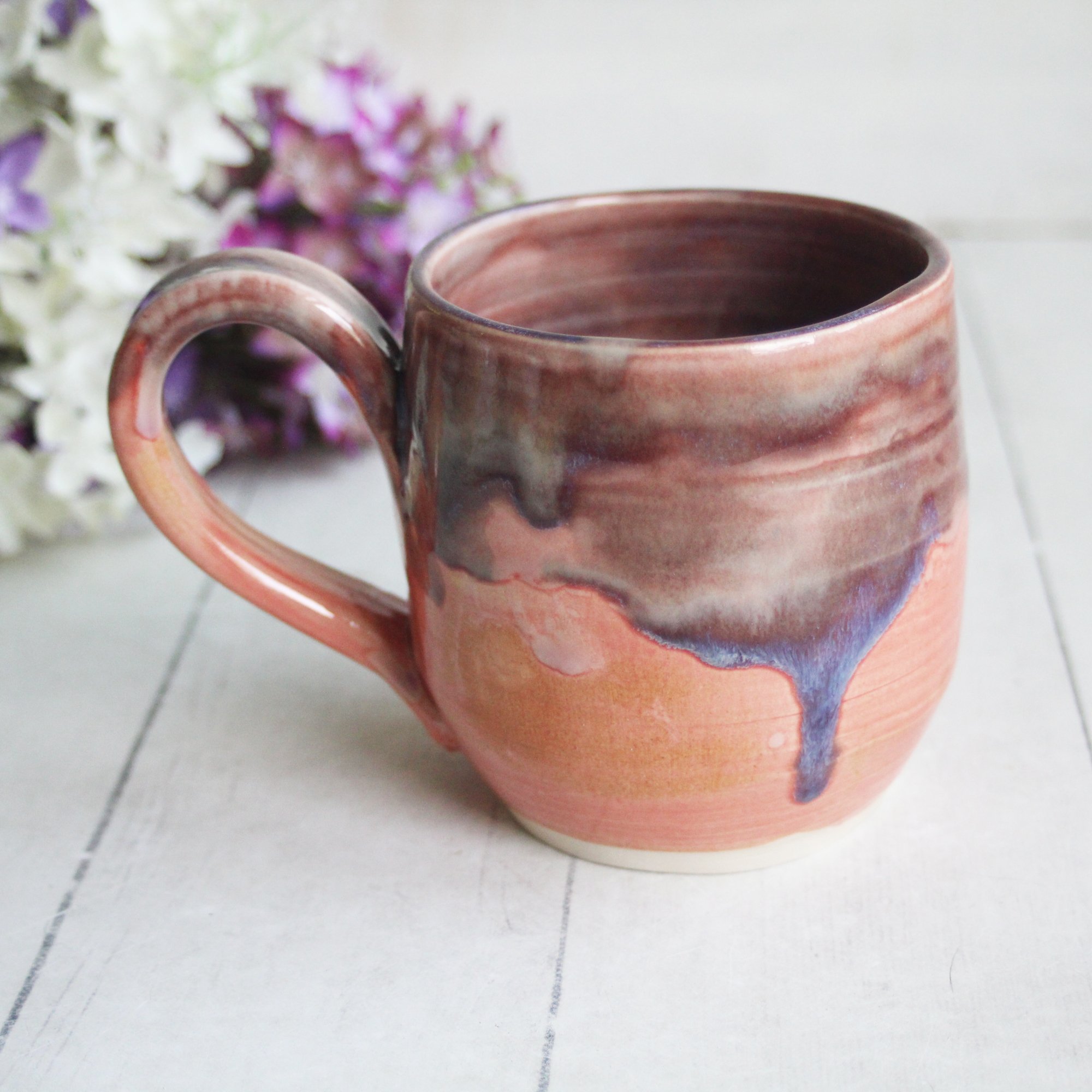 Apricot and Purple Mauve Glazed Pottery Mug, Made in USA 13 ounce Cup