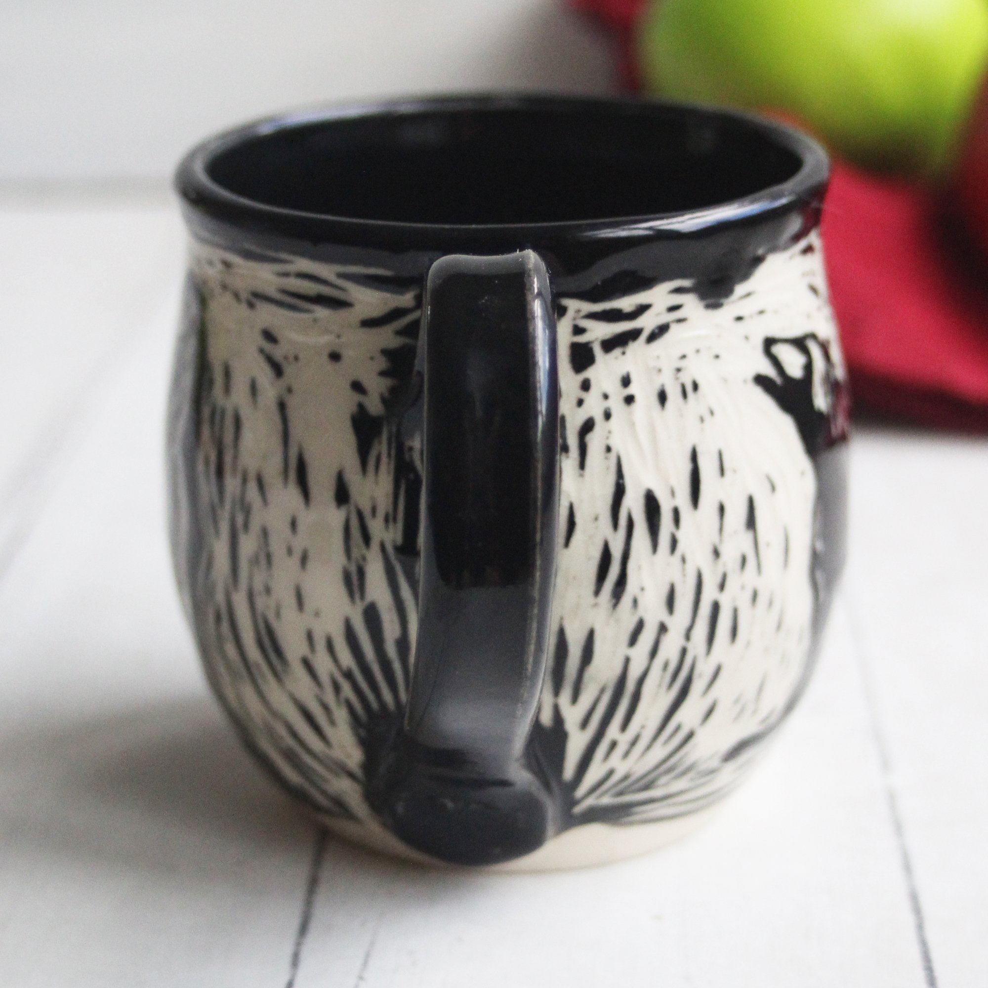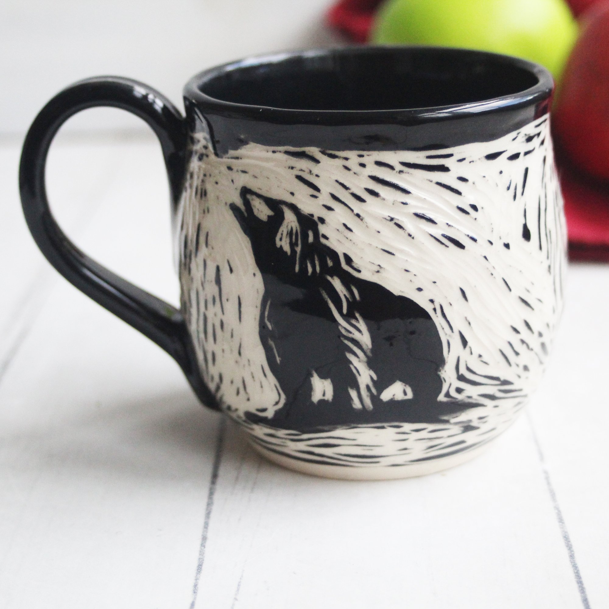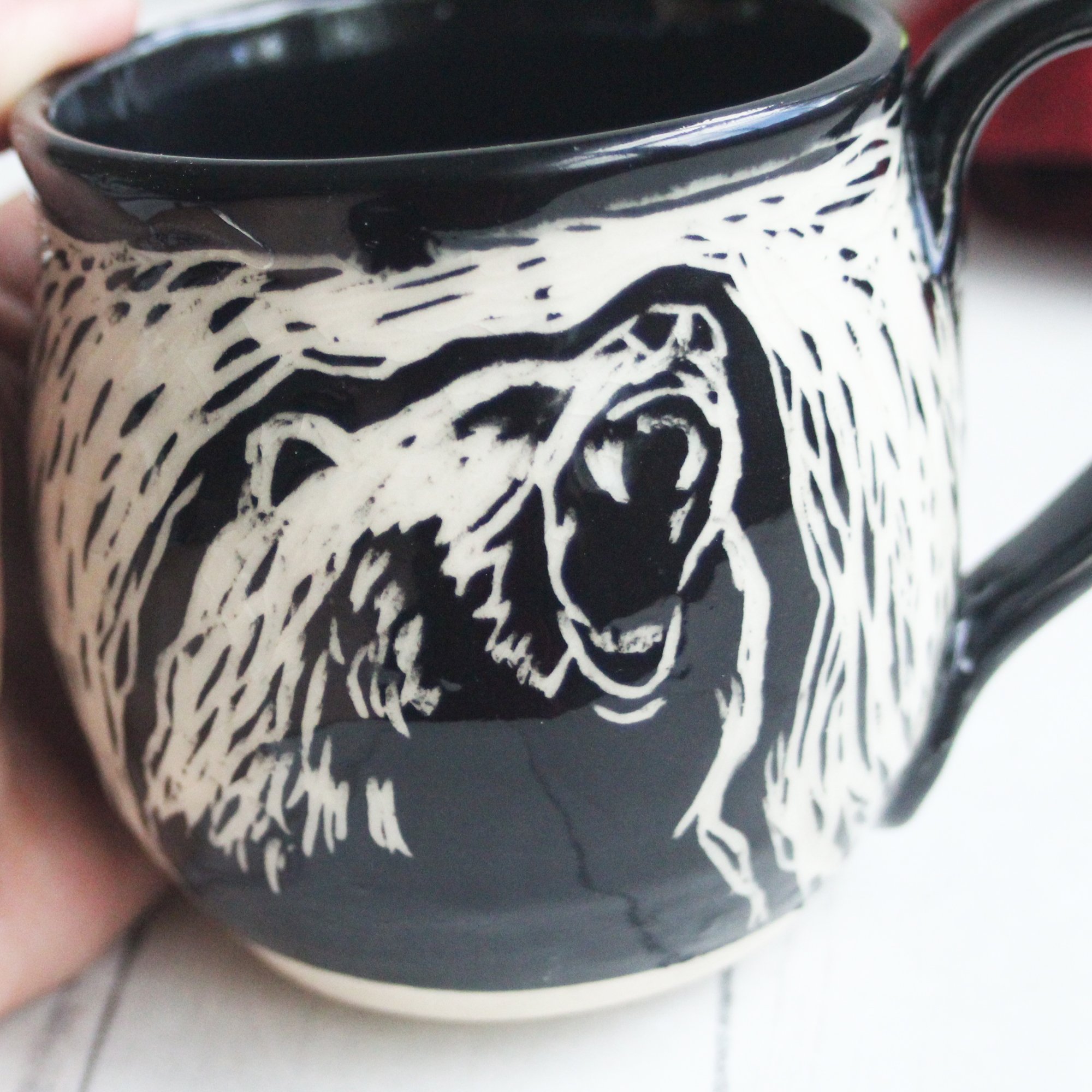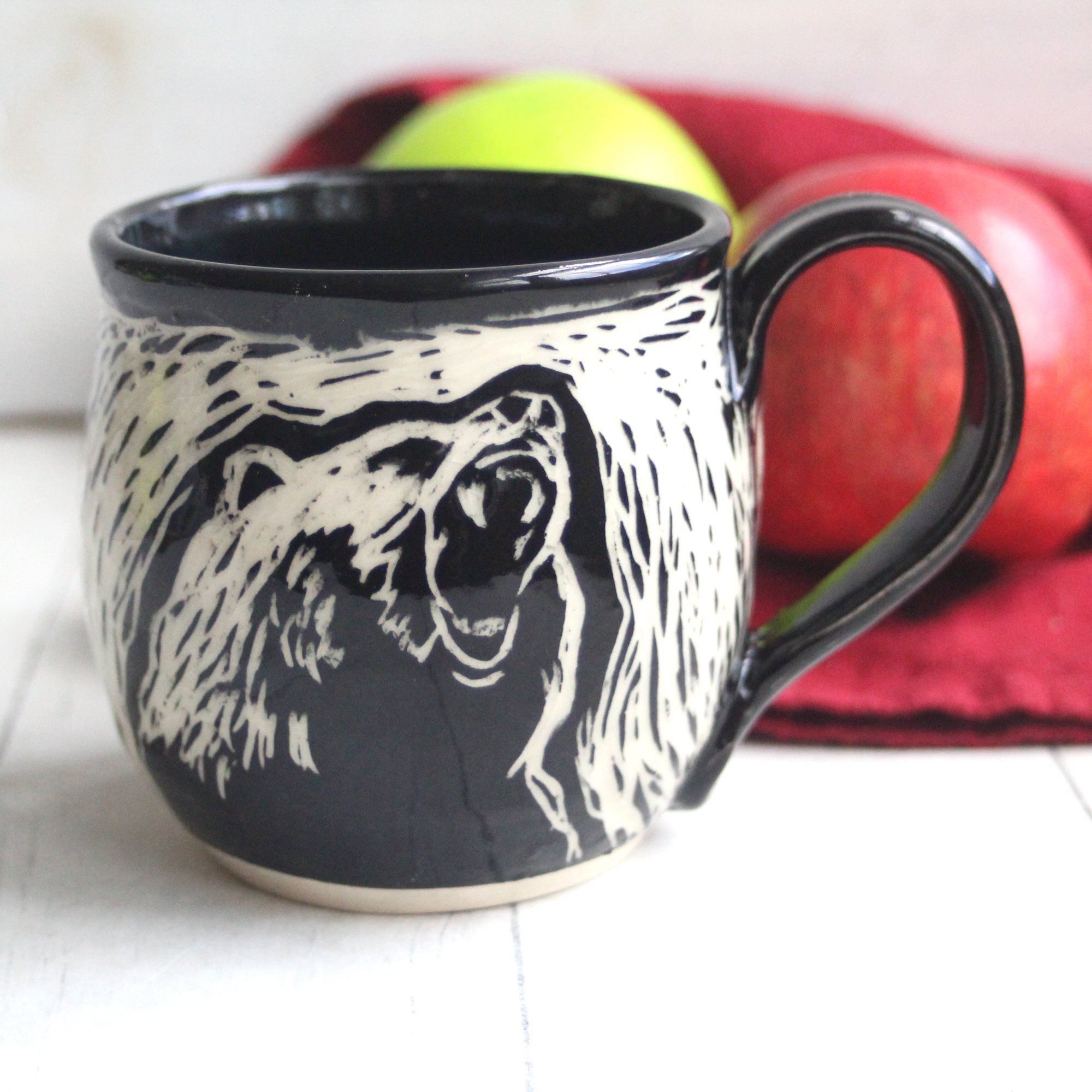 Black Bear Sgraffito Mug, Beautiful Carved Bear Coffee Cup, 12 oz., Made in USA