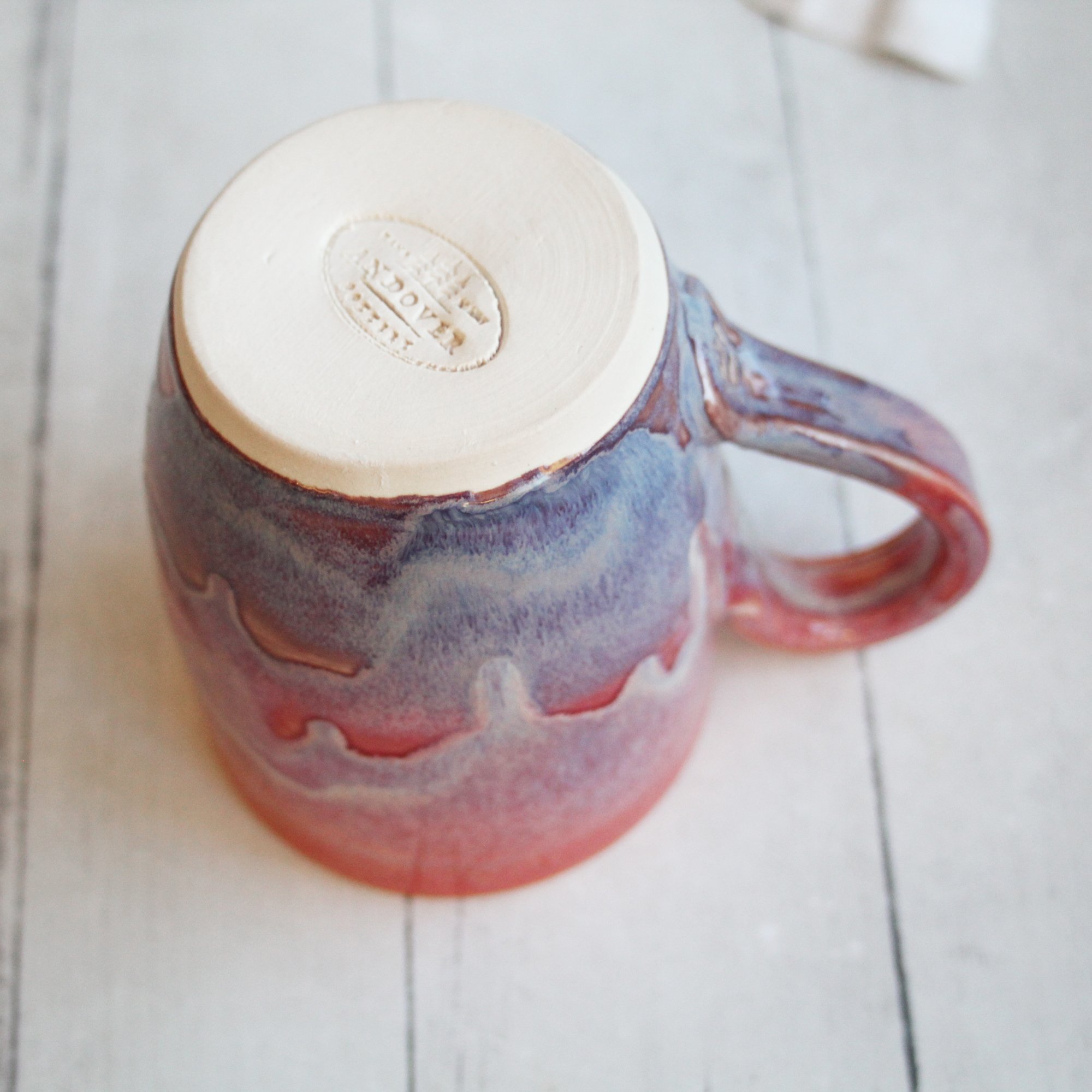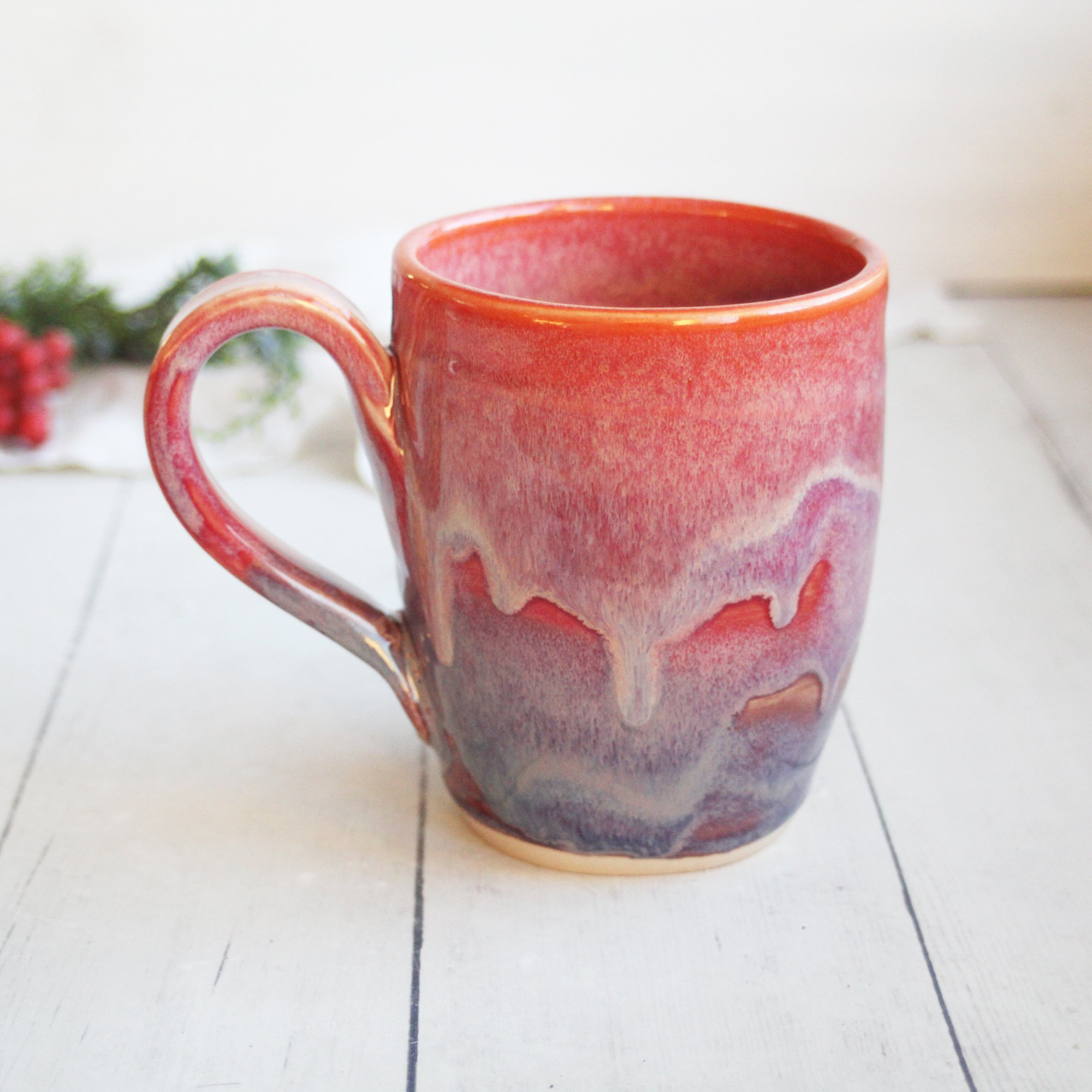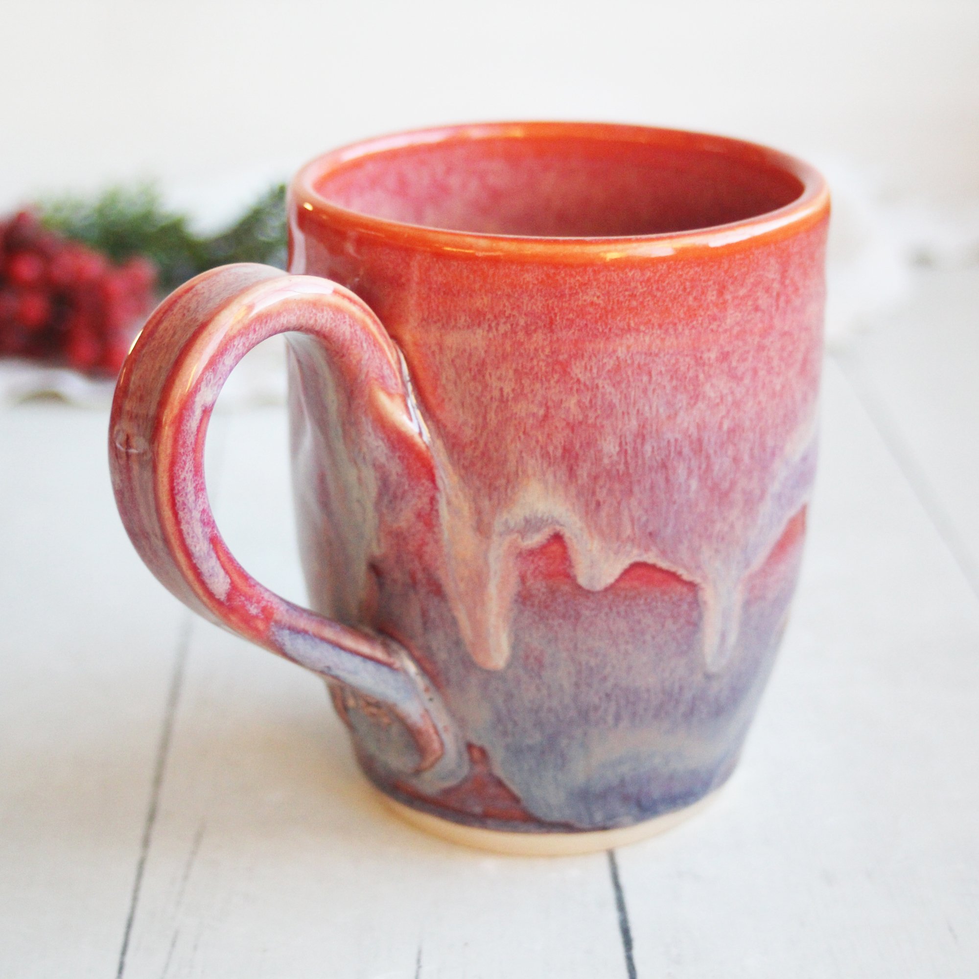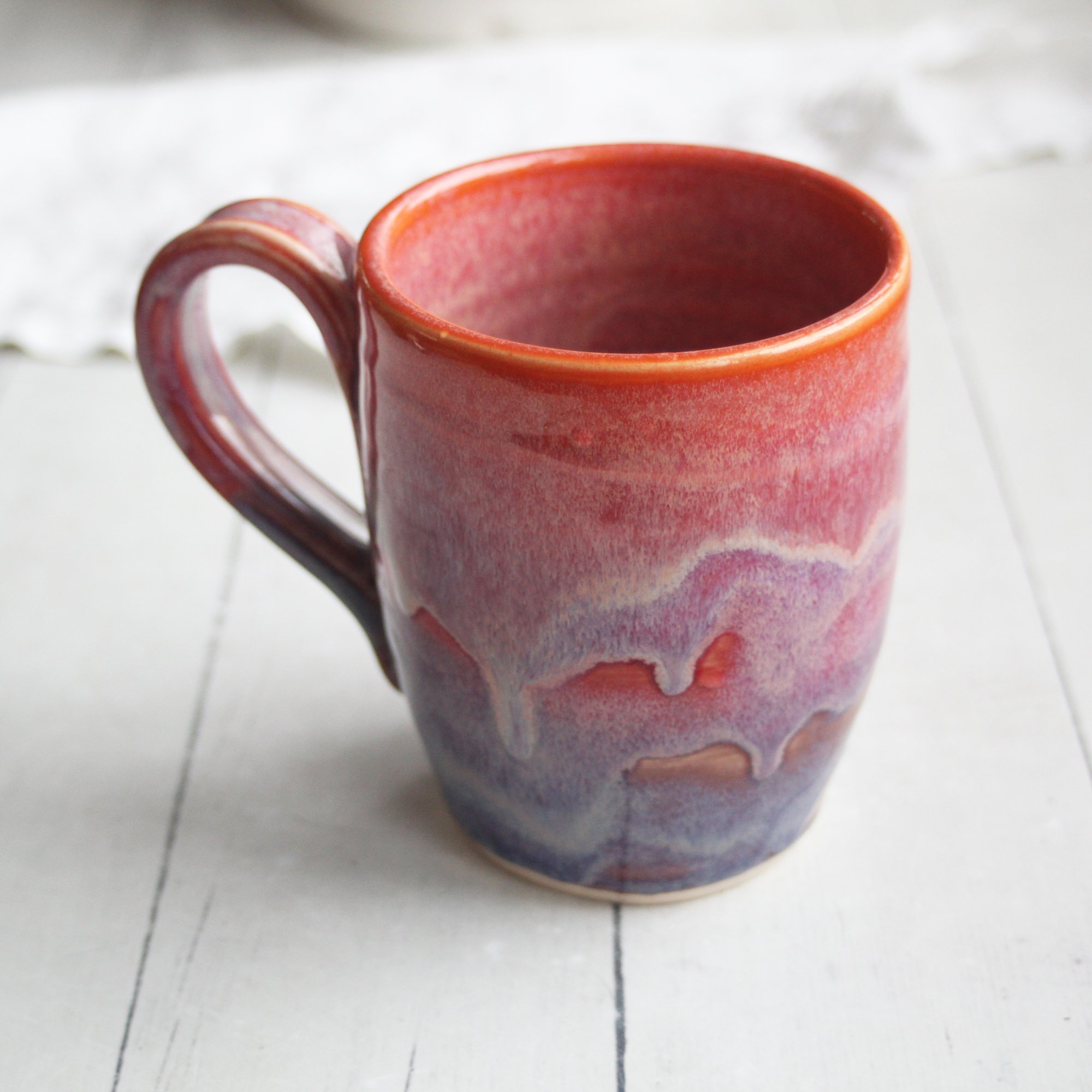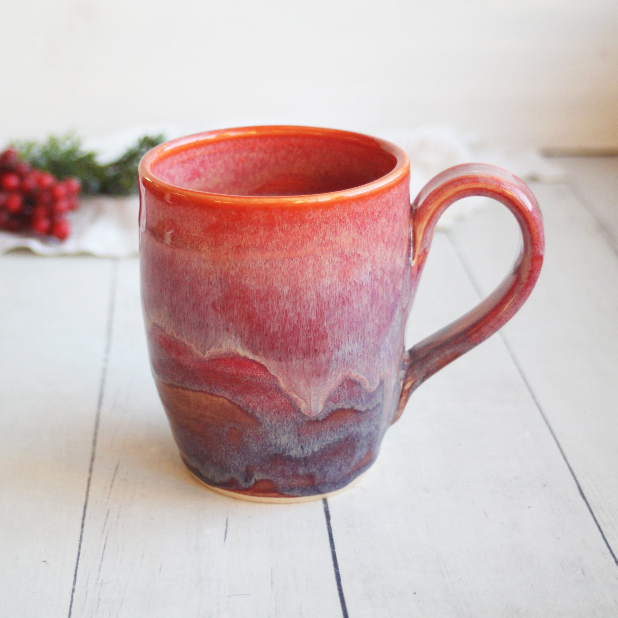 Bright Orange and Blue Purple Handmade Pottery Mug, 14 Ounce, Made in USA