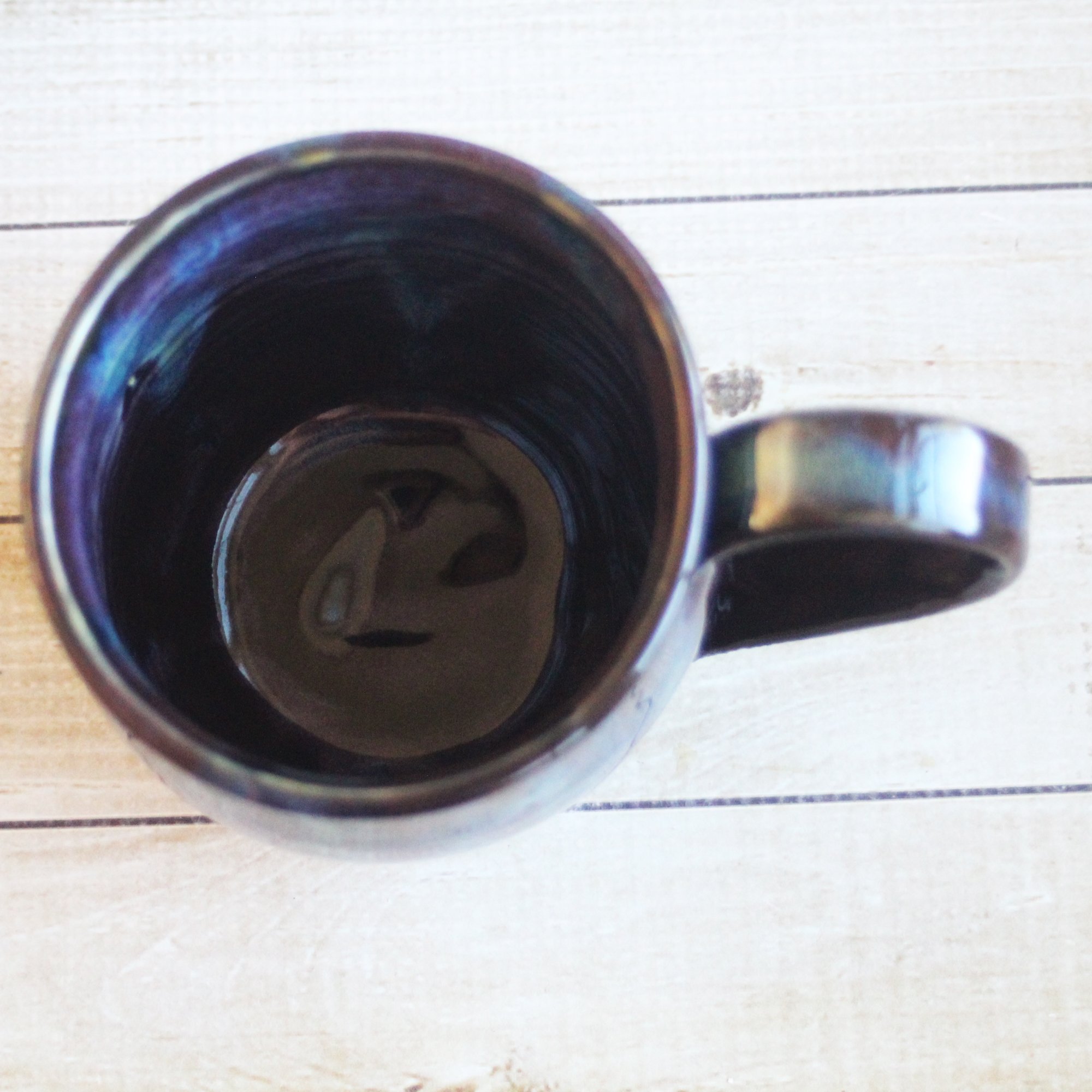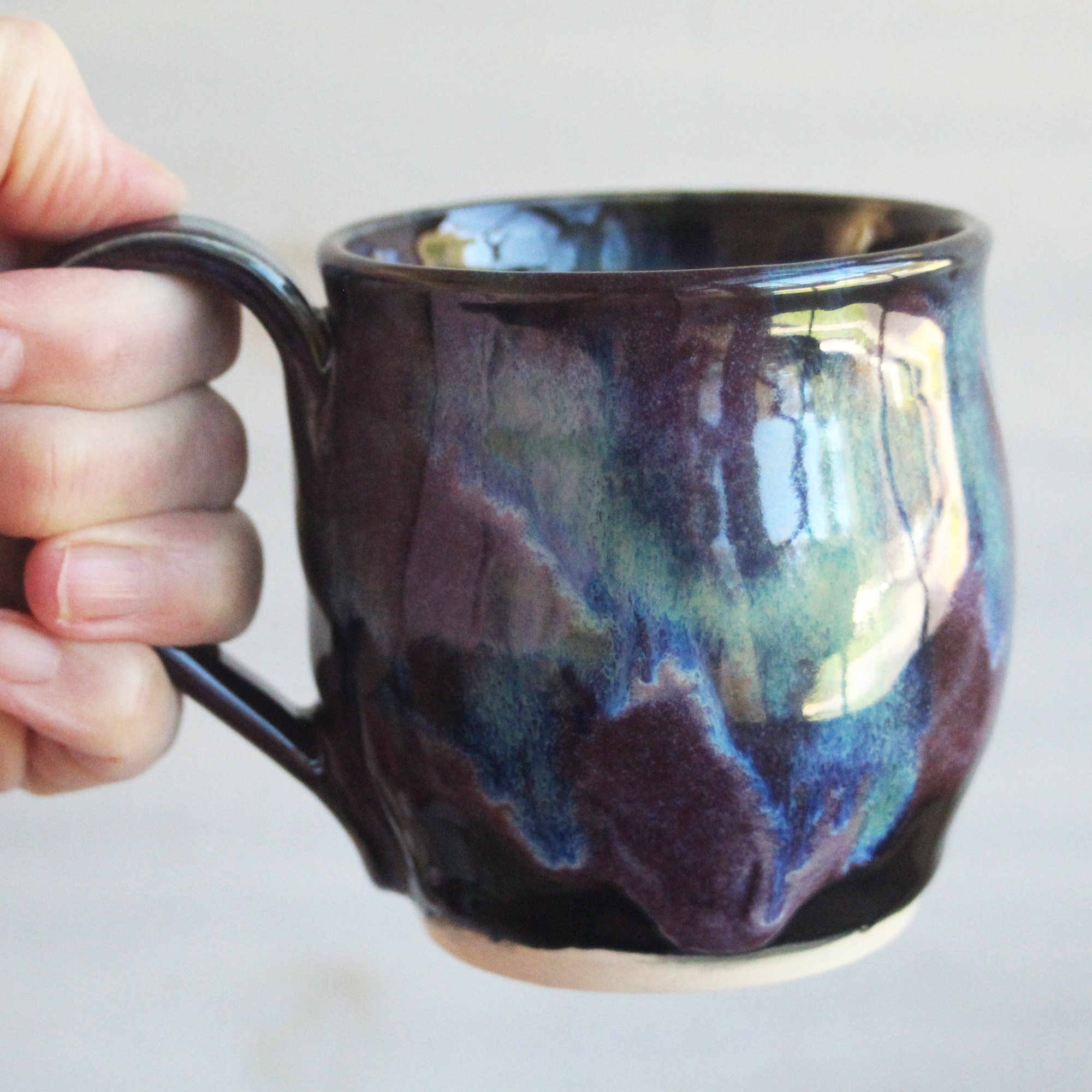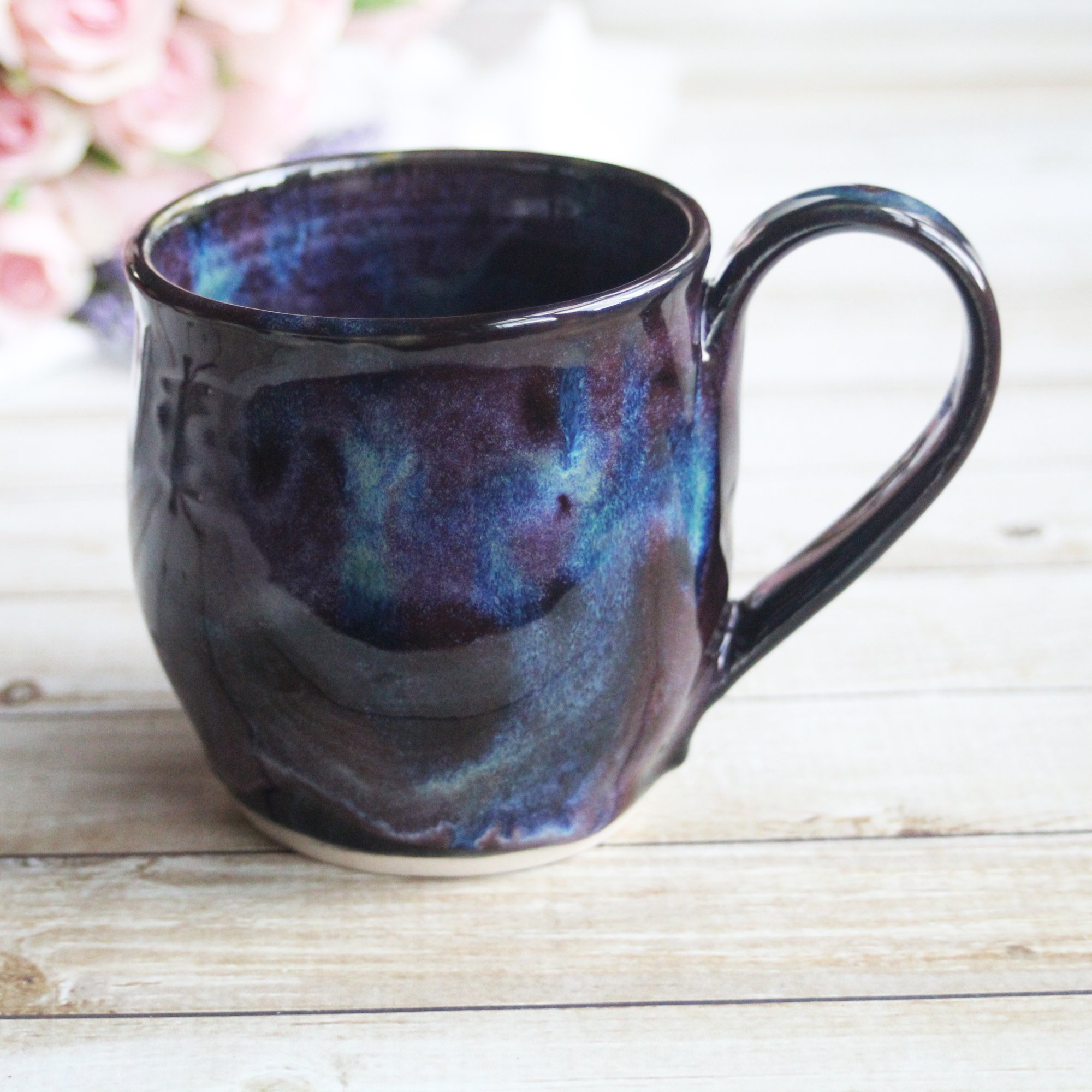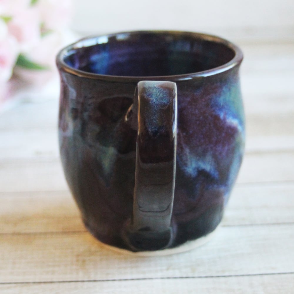 Cosmic Mug in Purple, Black and Blue Glazes, Handmade Pottery, Made in USA