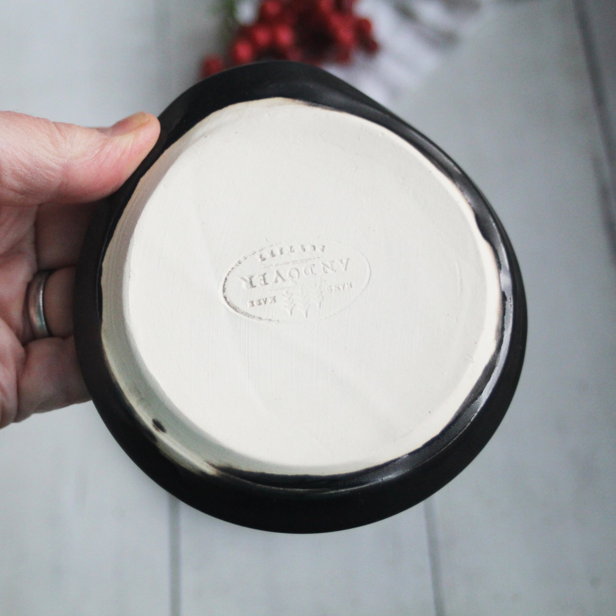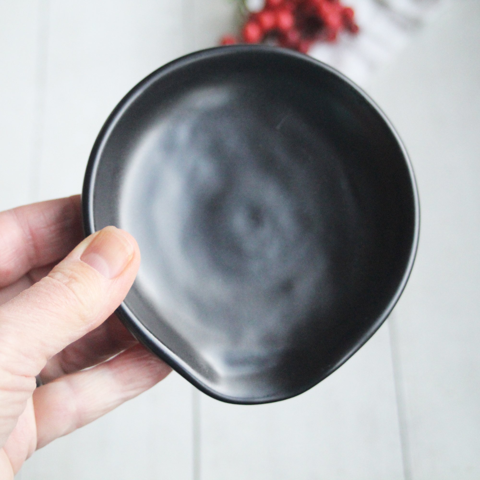 This listing is for two spoon rests. This spoon rest was thrown and trimmed on my pottery wheel using a white stoneware clay. It was bisque fired and glazed with a satin black glaze. It was then high fired in my electric kiln. Approximate size: 4.75" wide and 1" high This spoon rest is great to sit right next to your coffee pot, it's the perfect smaller size for a teaspoon used for coffee or tea. Dishwasher safe