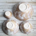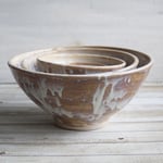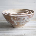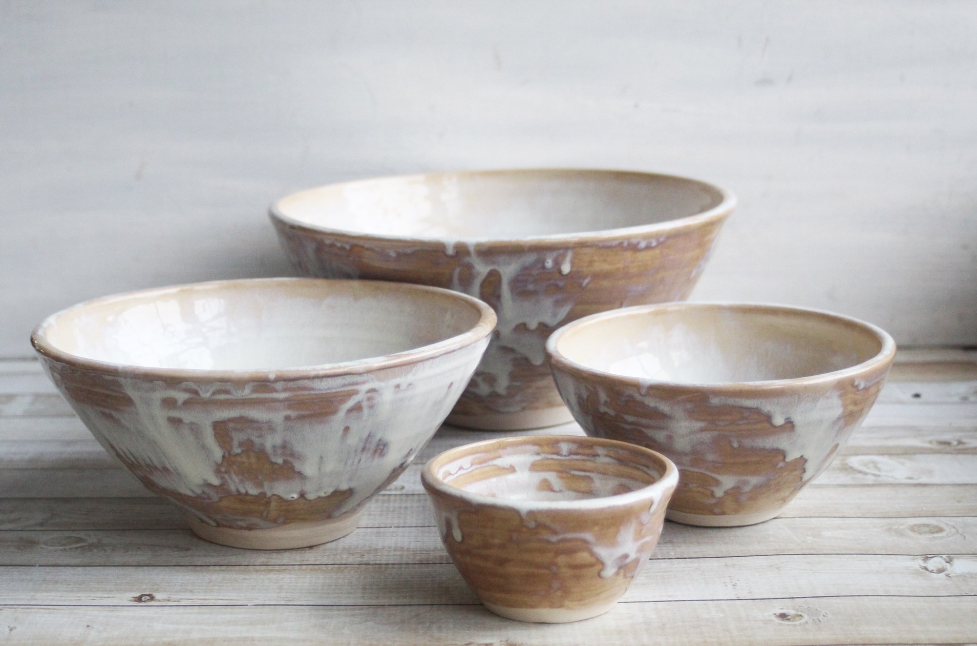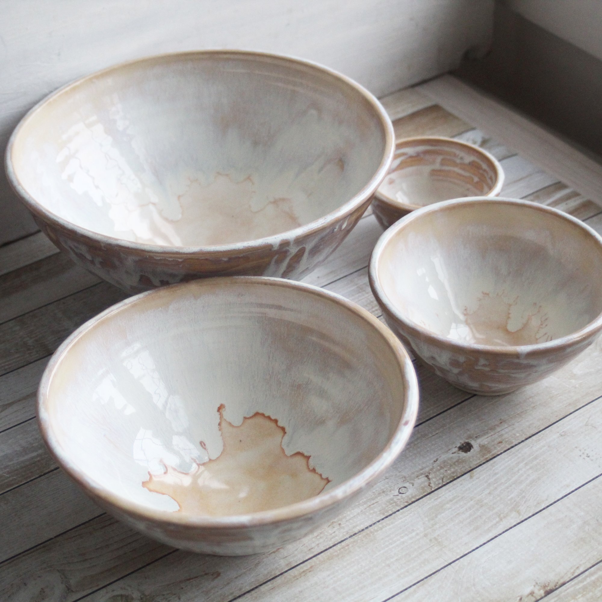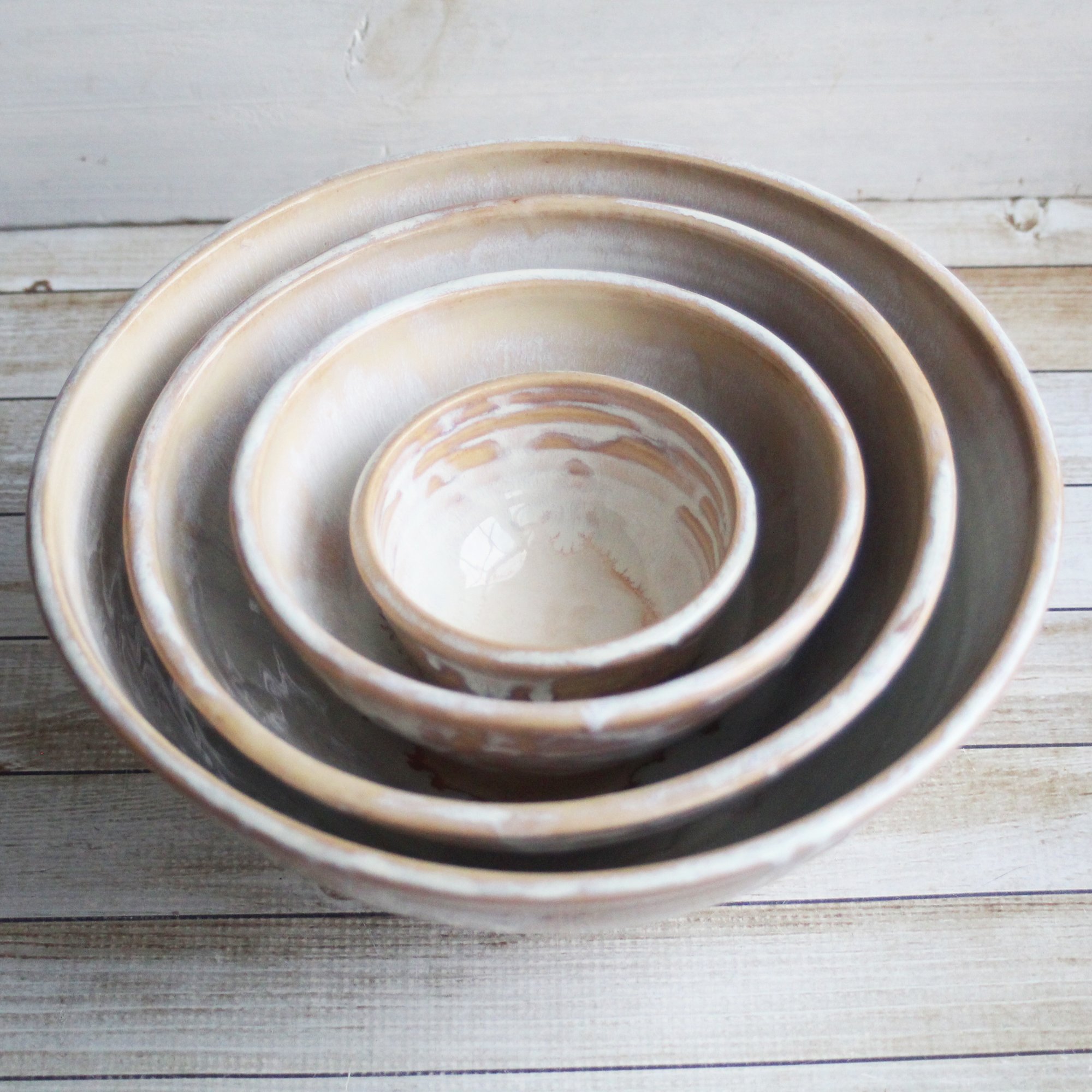 Custom Order for Kathleen, Set of Four Ceramic Nesting Bowls In Rustic White and Ocher Glaze
