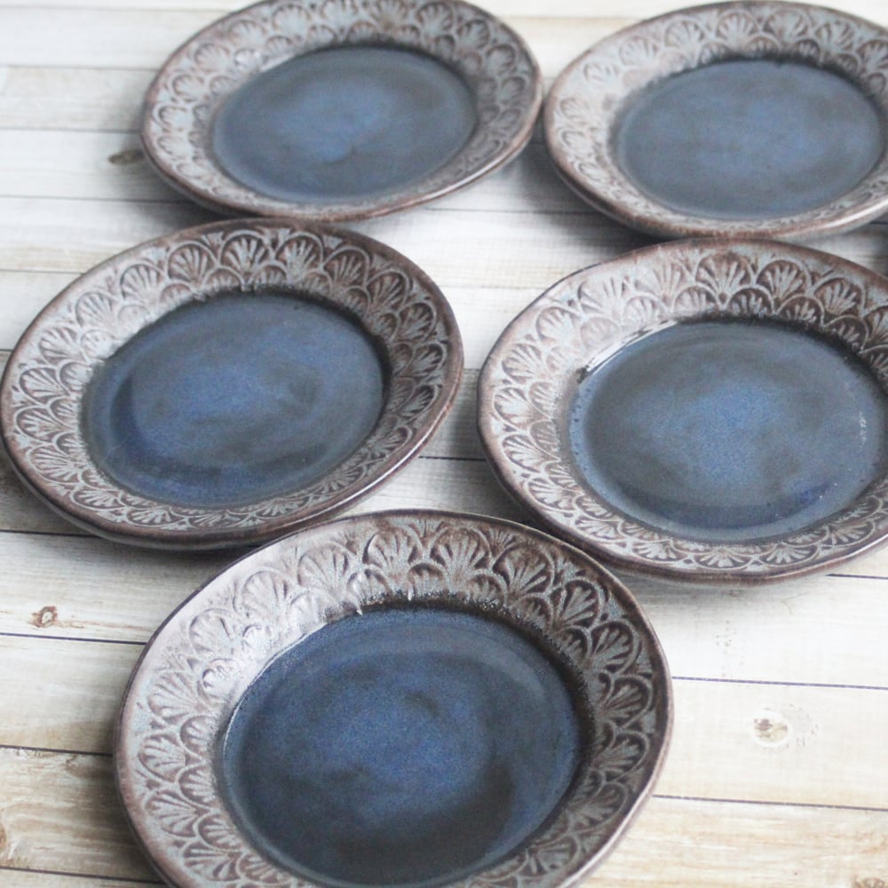 Custom Order for Sid - 6 Rustic Modern Handmade Dessert Plates in Charcoal and Midnight Blue