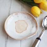 Large Spoon Rest Handcrafted Pottery Spoon Holder in White and Ocher Glaze
