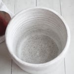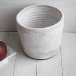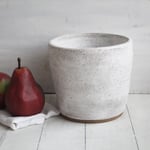 Large Utensil Holder in Matte White and Speckled Stoneware, Handmade Ceramic Kitchen Crock