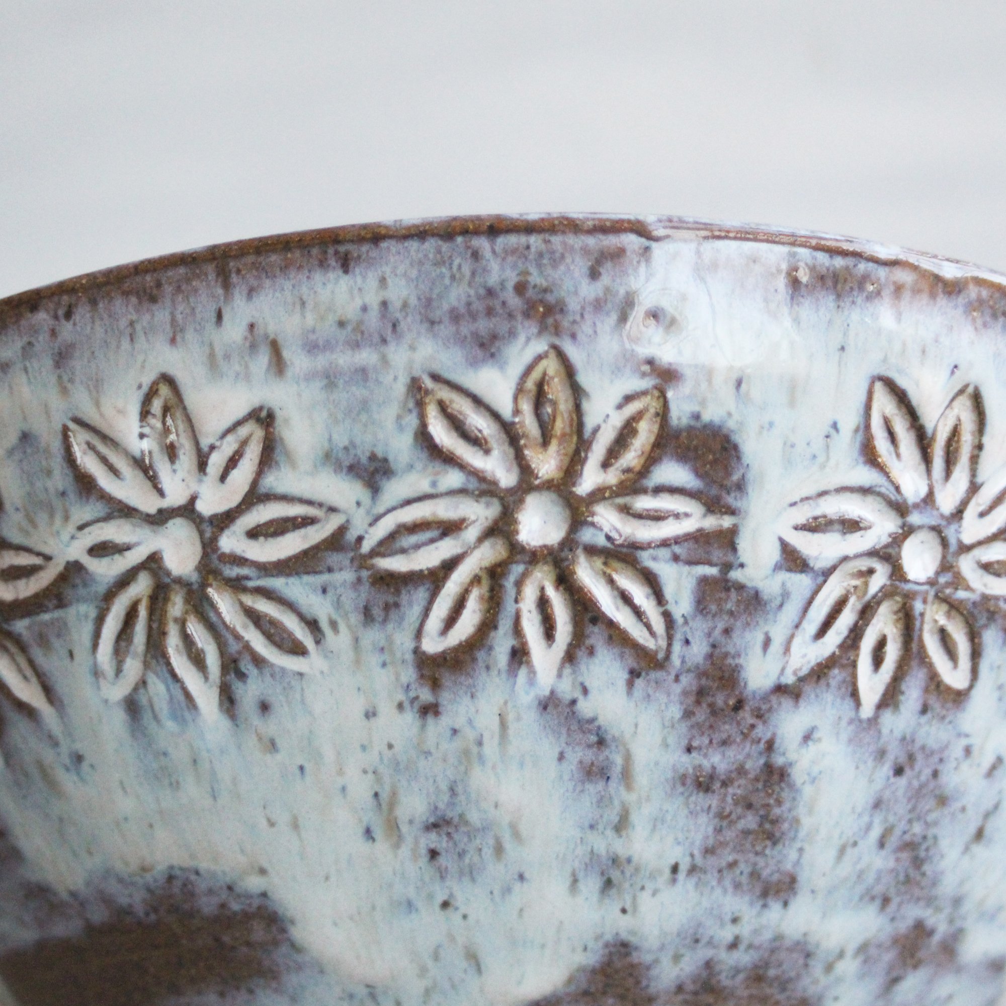 *This bowl has a slightly rough texture around the carved flower design.