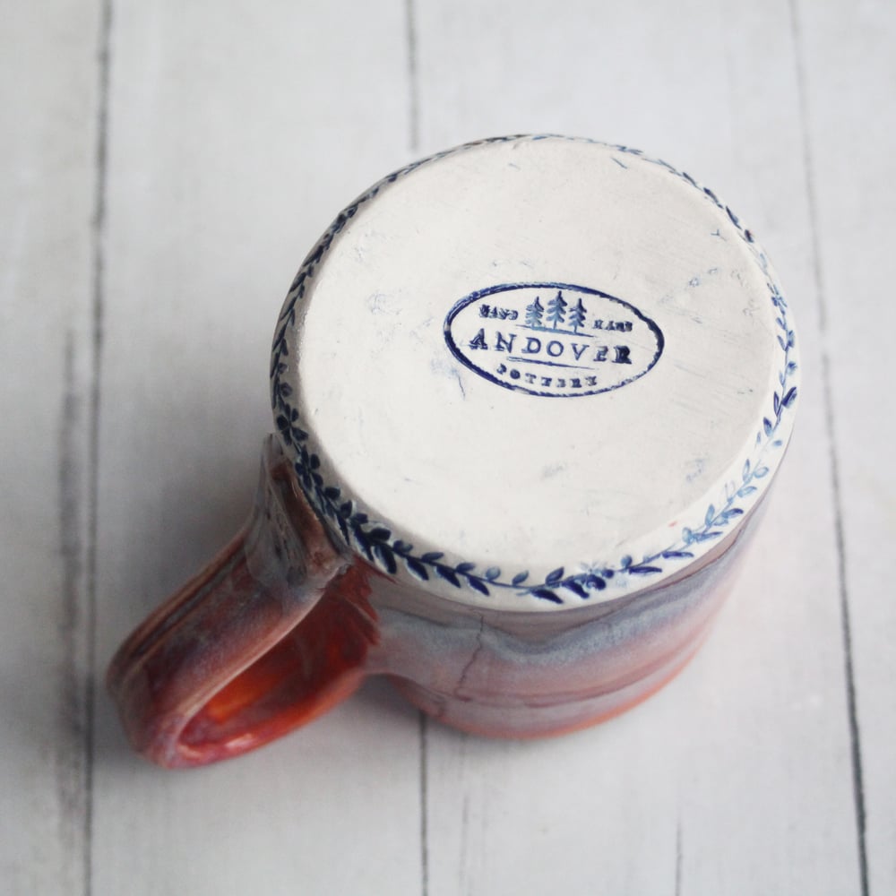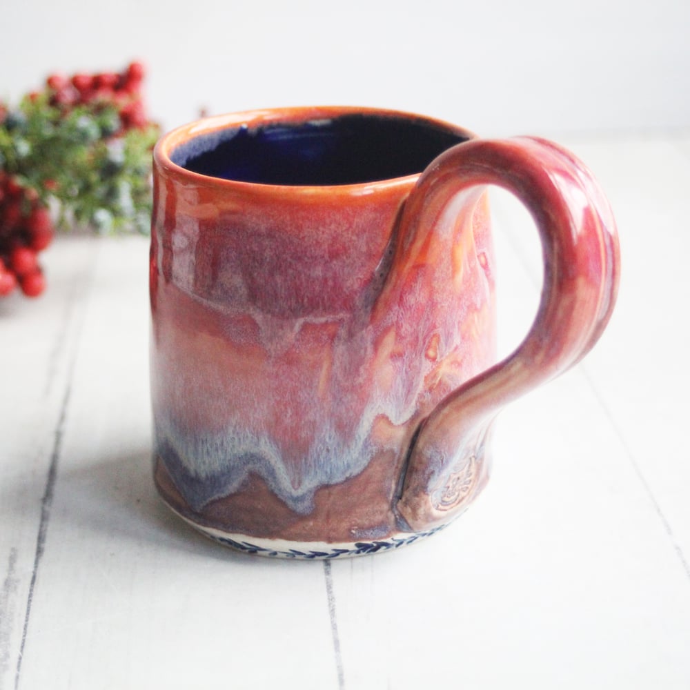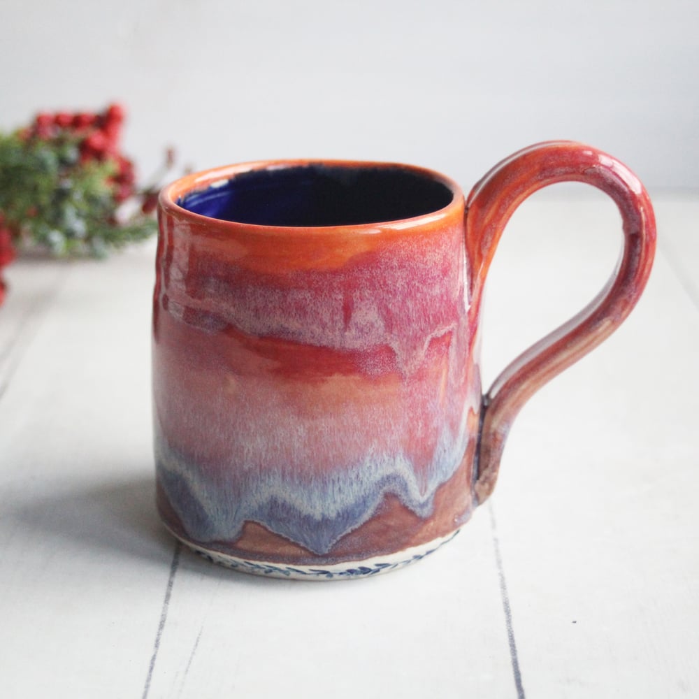 Gorgeous Red, Orange and Blue Handmade Pottery Mug, 10 Ounce, Made in USA