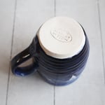 This beautiful mug was hand thrown and trimmed on my pottery wheel using a white stoneware clay. It was bisque fired and glazed with several layers with different shades of blue glazes and high fired in my electric kiln.