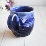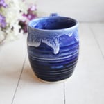 Handcrafted Pottery Mug in Dripping Blue Glazes, 14 Ounce Gorgeous Artful Mug, Made in USA