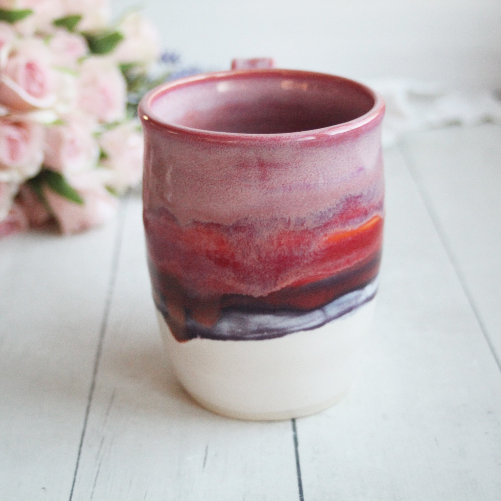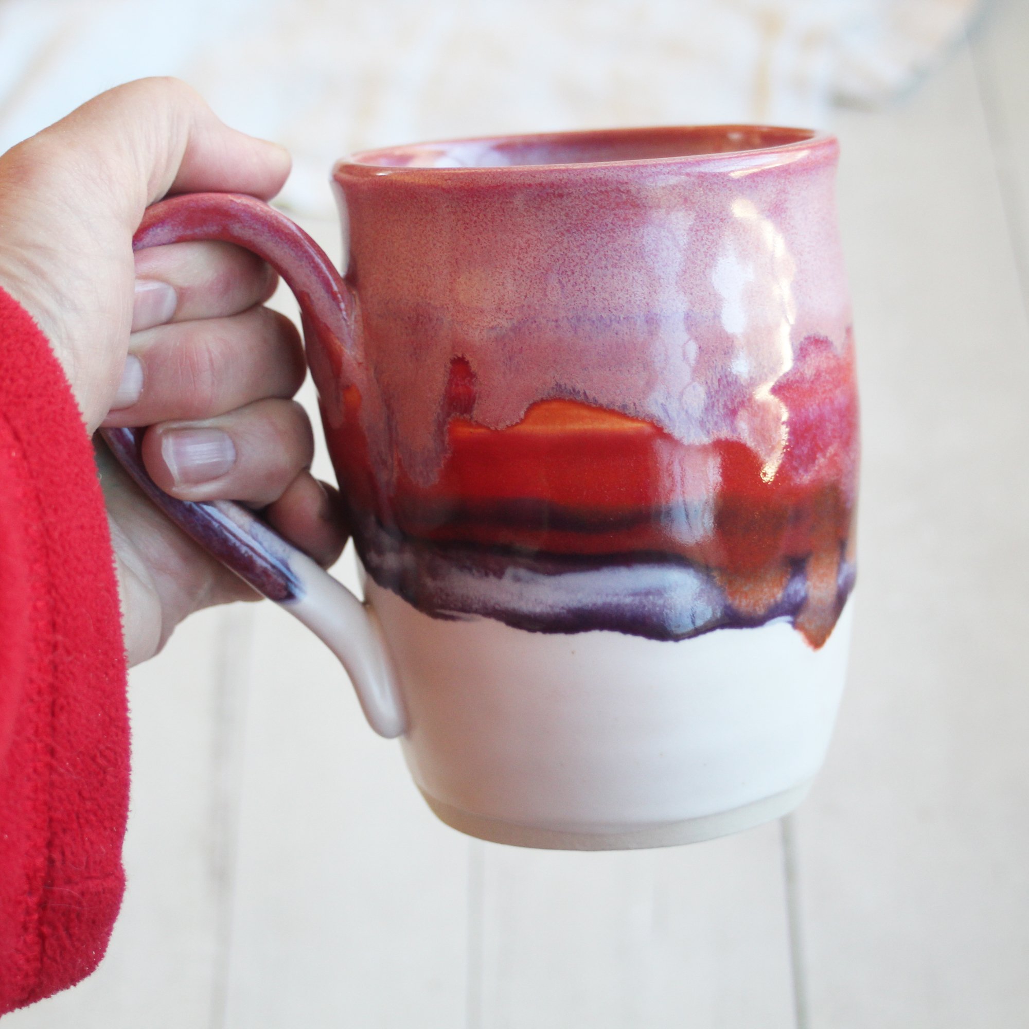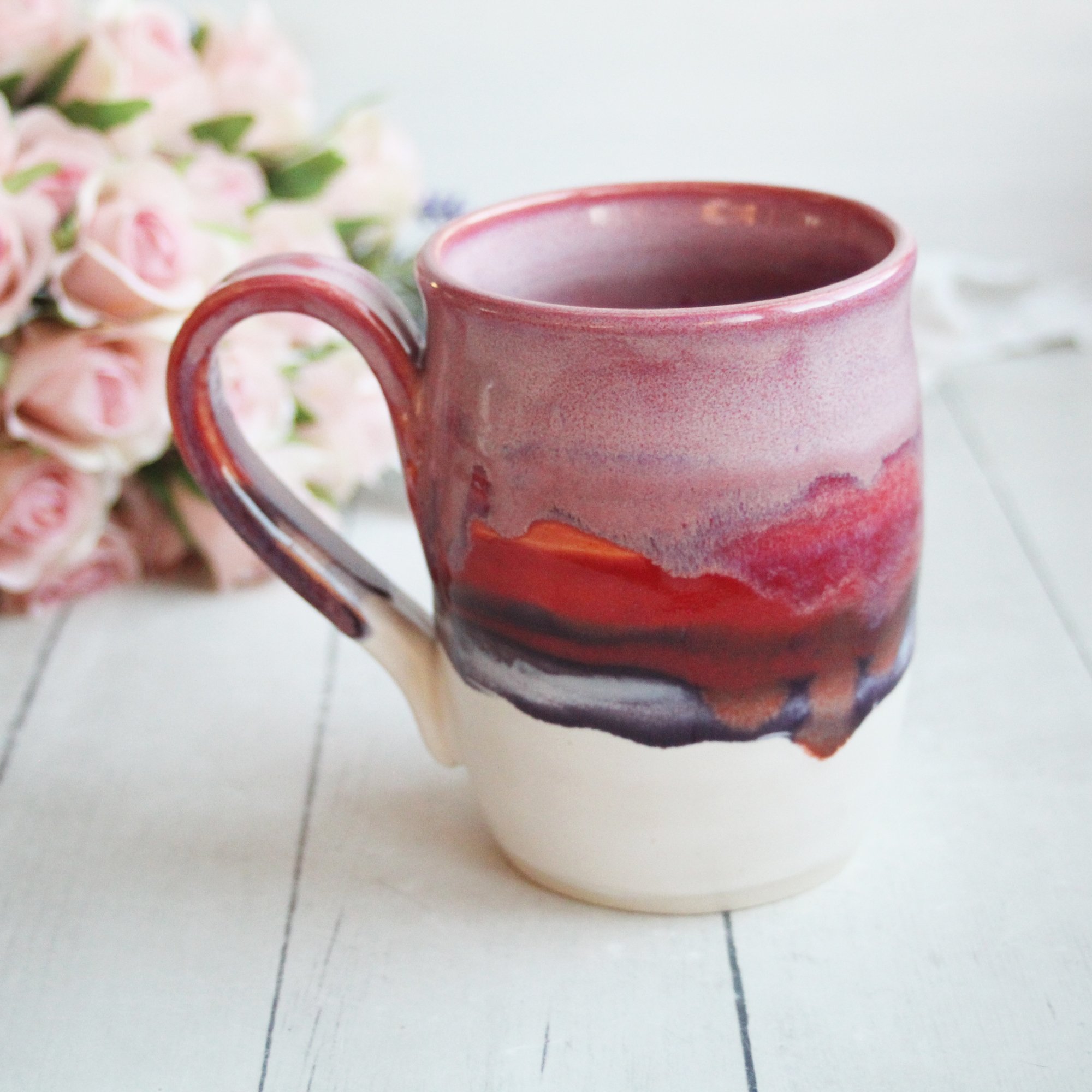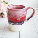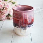 Handcrafted Pottery Mug in Dripping Pink, Red and Purple Glazes, Large 17 oz. Made in USA