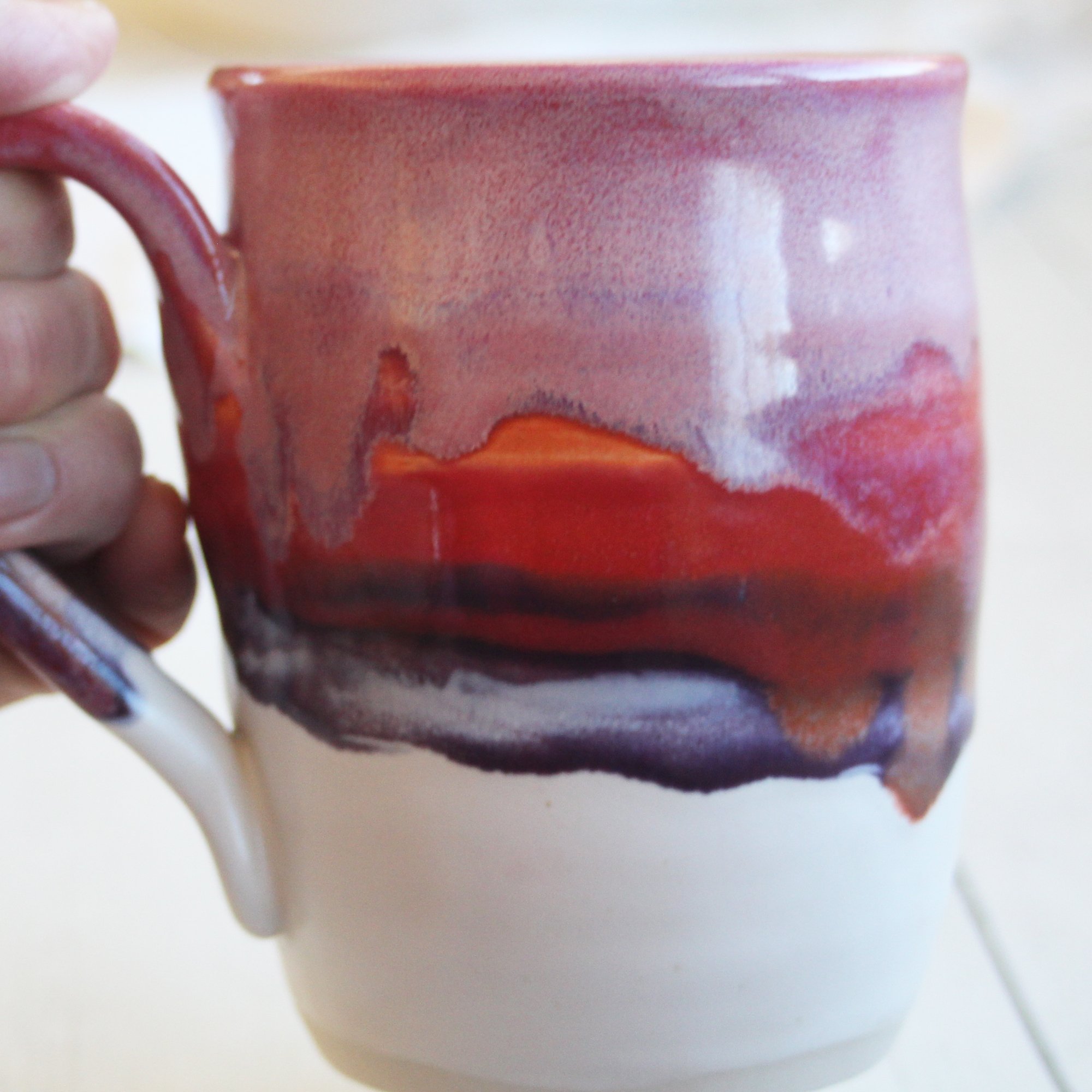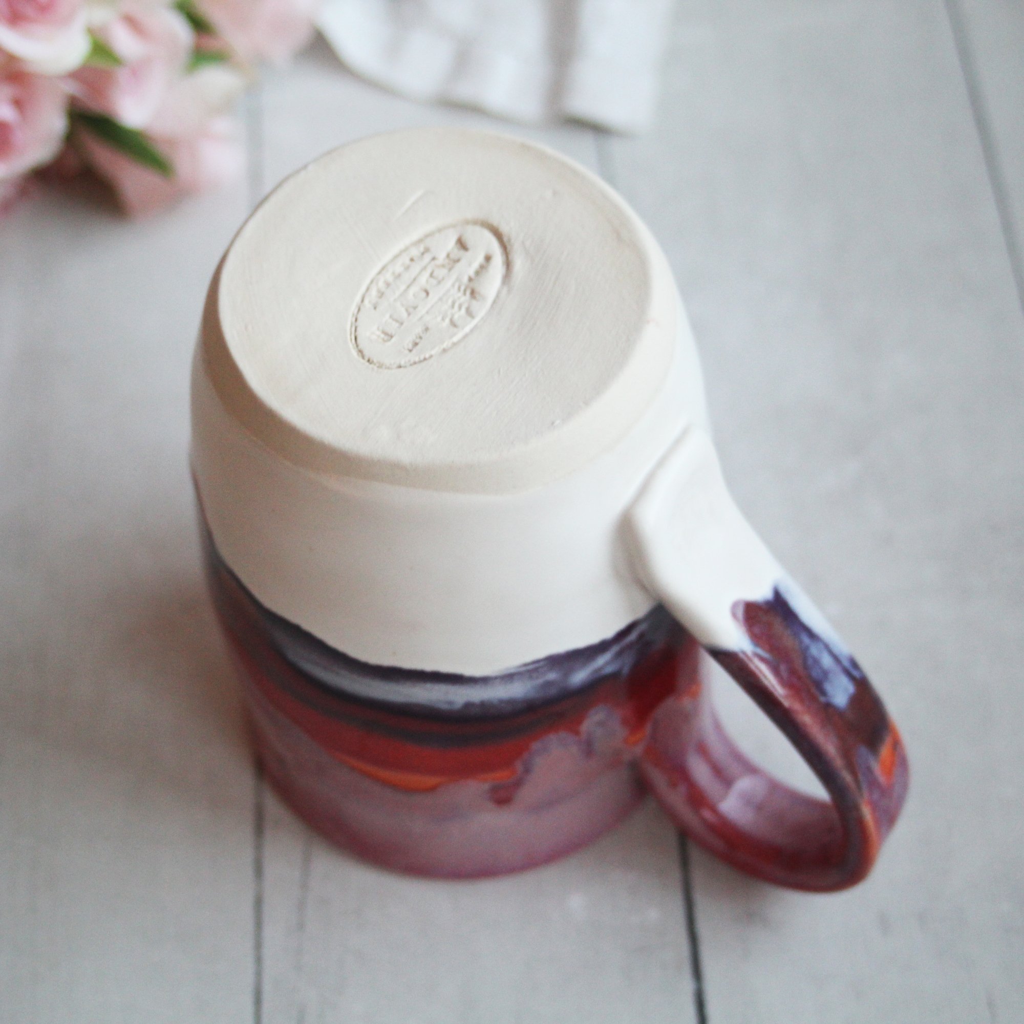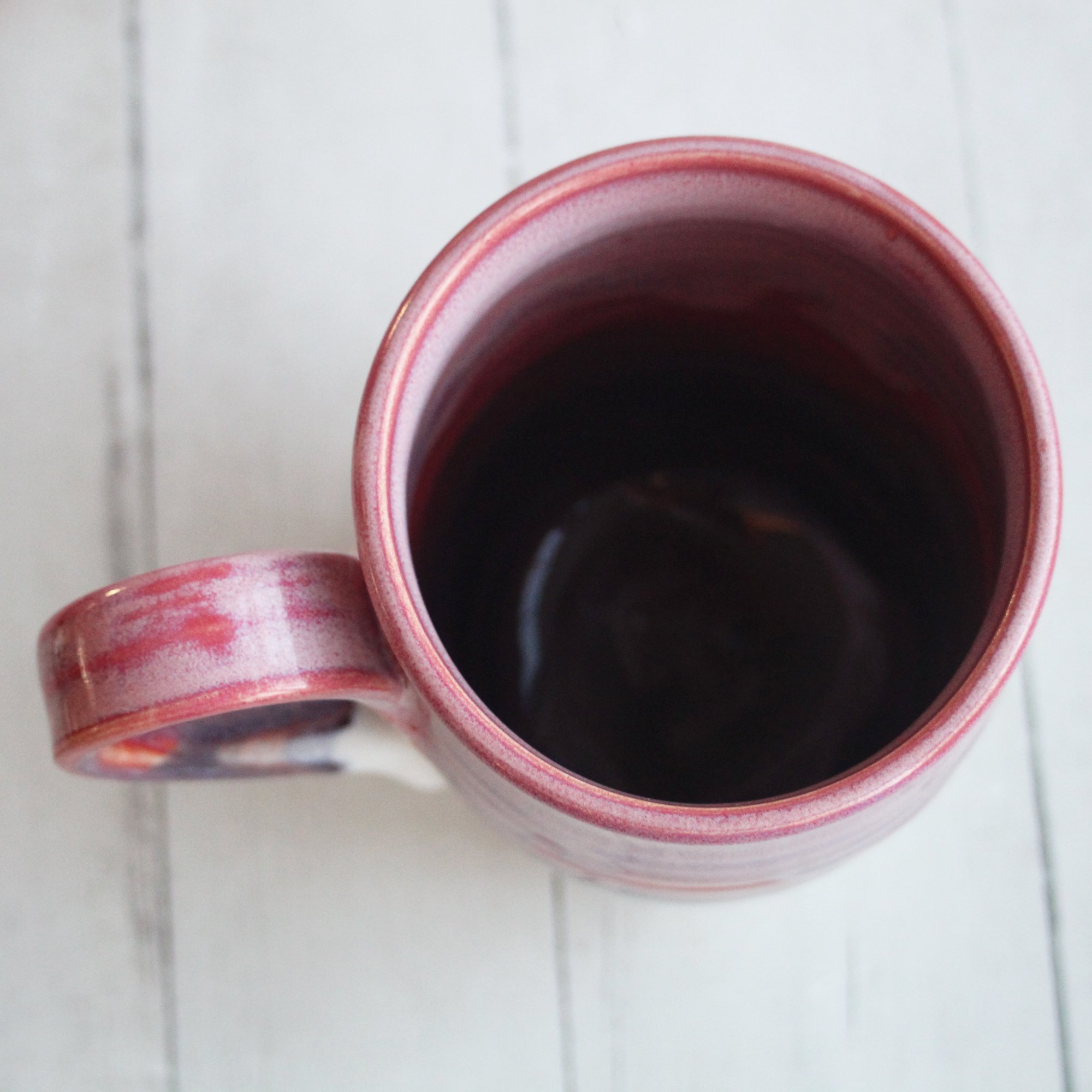 Handcrafted Pottery Mug in Dripping Pink, Red and Purple Glazes, Large 17 oz. Made in USA