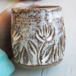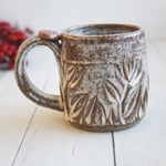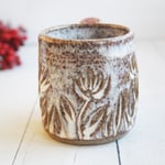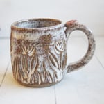 This is a special mug, the carvings show a variety of spring flowers . This unique cup will compliment any rustic, primitive or minimalist decor.