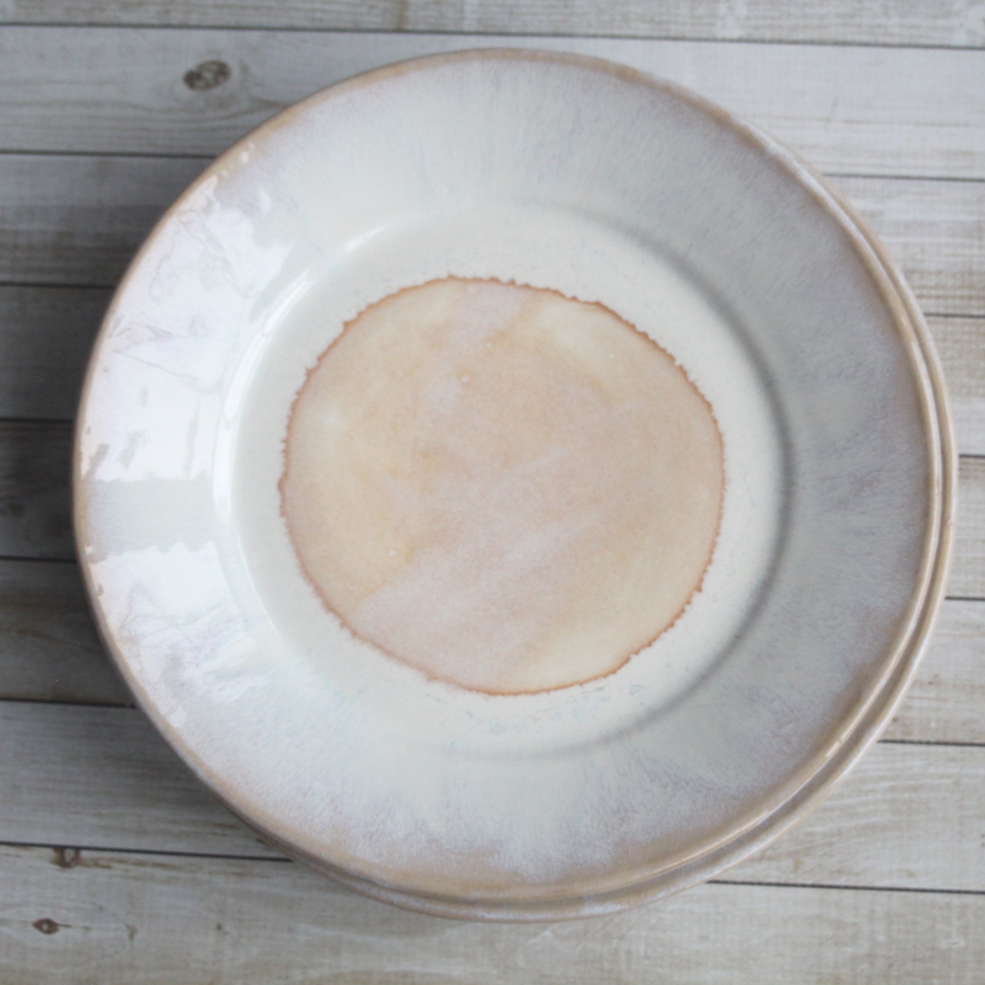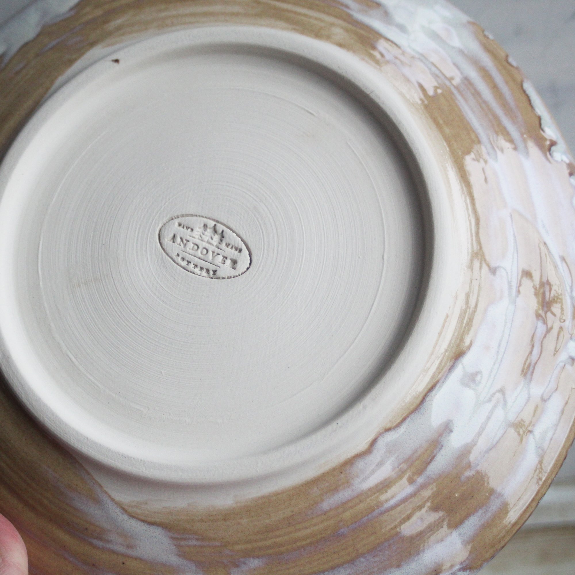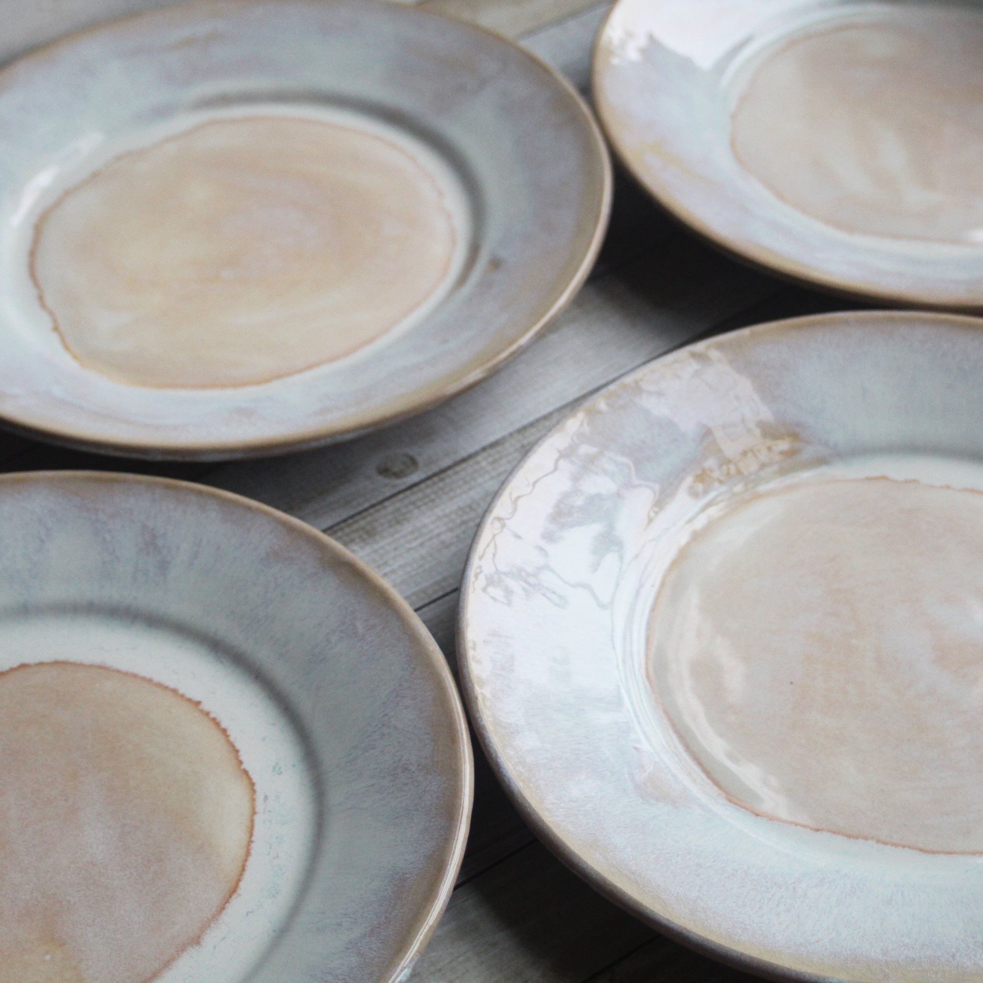 These 4 super rustic dinner plates were hand thrown and trimmed on my potter's wheel using a white stoneware clay. They were bisque fired and glazed with a beautiful white glaze that breaks to ocher and then high fired to cone 6 in my electric kiln. Each plate varies slightly in size and shape as they are each hand crafted. Approximate sizes are 10.5" wide across the top and 1.25" high. Looking for a custom place setting? Please feel free to contact me with questions on designing a set just for you. *These are stock photos, the plates you receive will vary slightly from the pictures due to each being made by hand. *Shipping is $60 USPS Priority mail. If you live in the Northeast, I will refund shipping overages. * READY TO SHIP Dishwasher, microwave, food safe. *Looking for more? please contact me and ask about a custom order. Email Me View more Dinnerware here