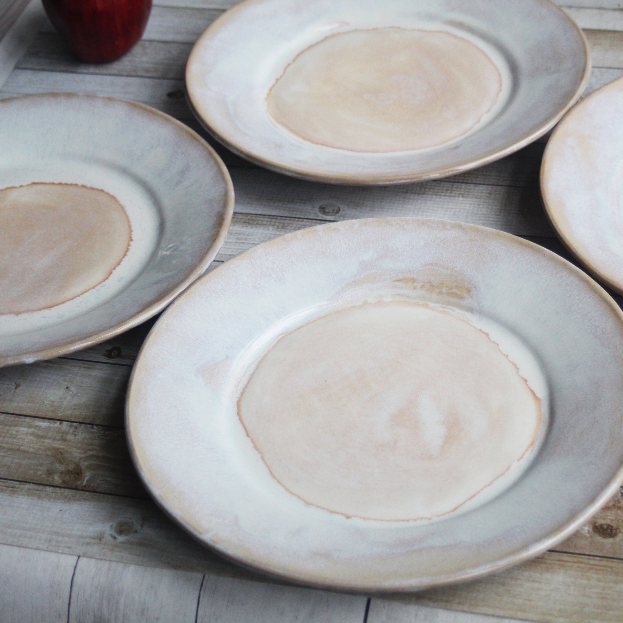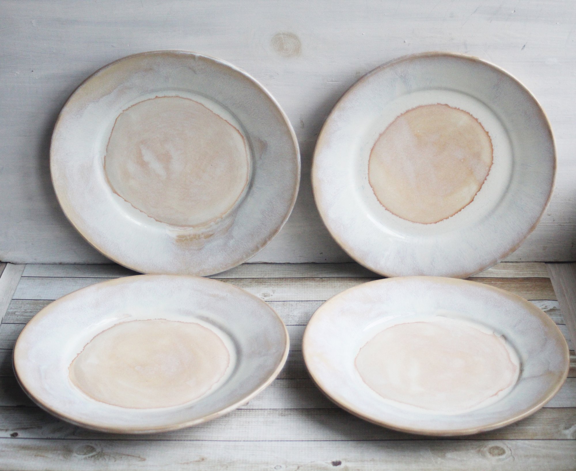 Handcrafted Rustic White Dinner Plates Pottery Dinnerware Set of Four Made in USA