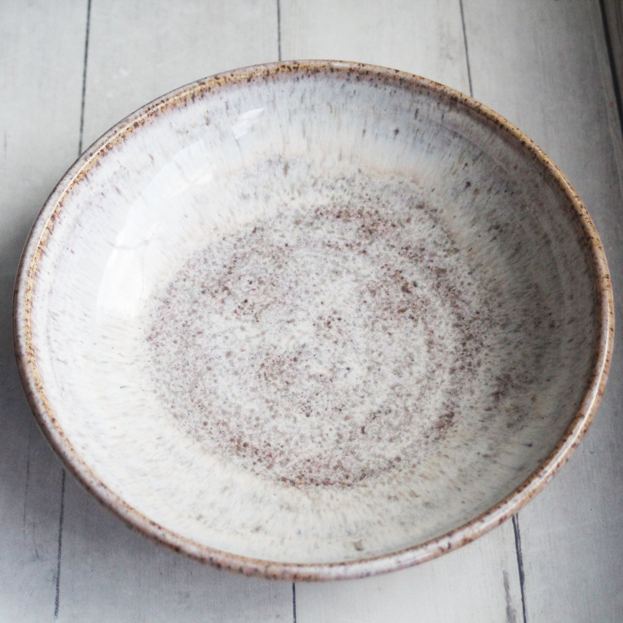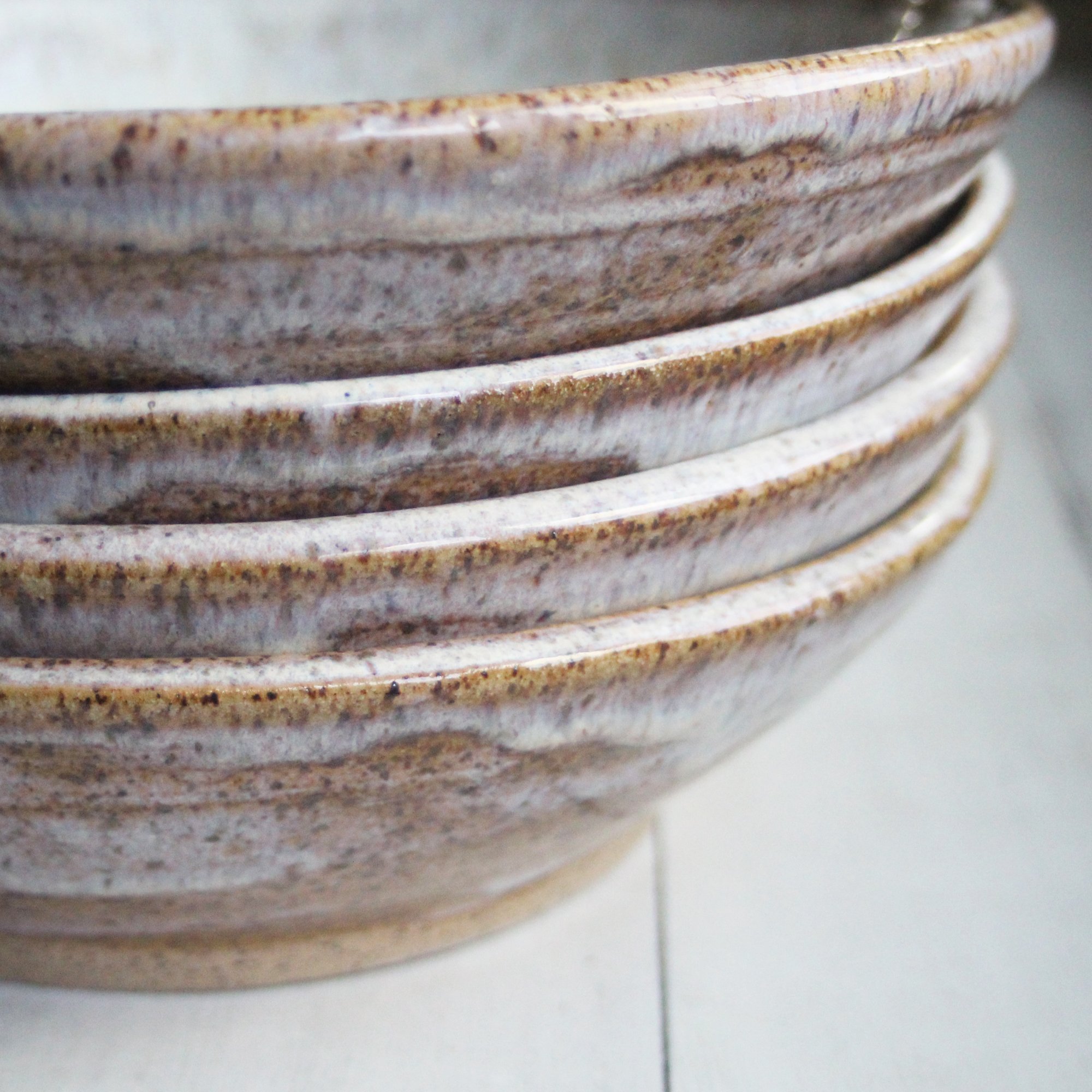 These rustic bowls were created using a brown speckled stoneware clay, they were each hand thrown and trimmed on my pottery wheel. They were bisque fired and glazed with a beautiful toasted marshmallow glaze that allows the natural speckling of the clay to show through. They were then high fired in my electric kiln.