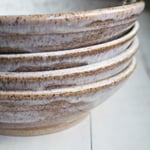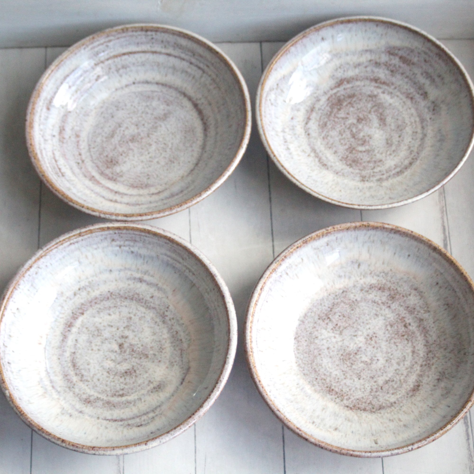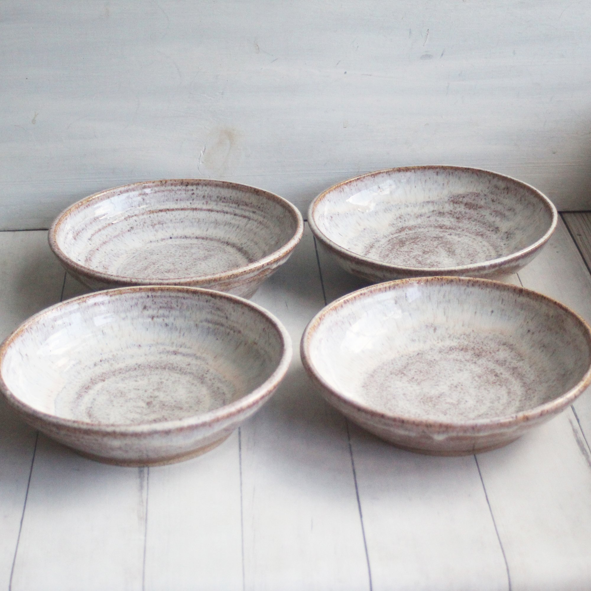 Handcrafted Set of 4 Rustic Shallow Bowls in Toasted Marshmallow Glaze, Made in USA