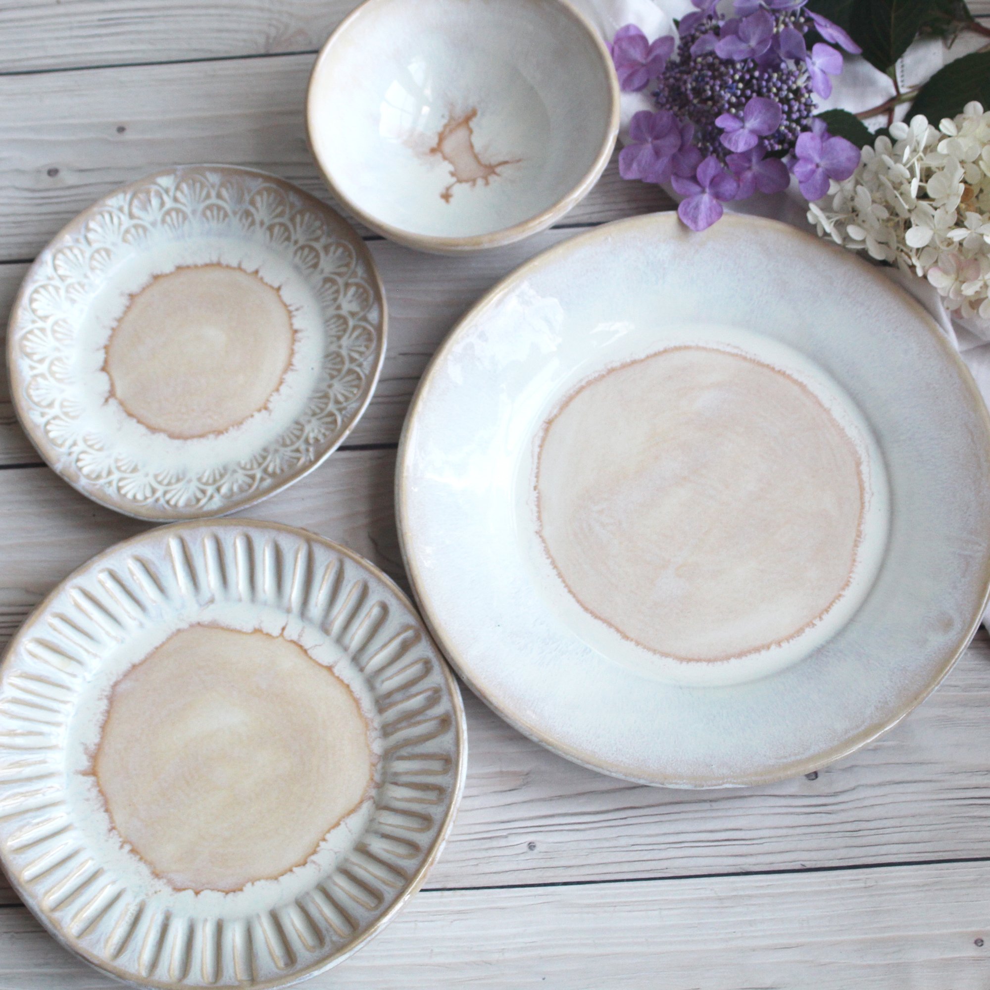 Handmade Dinnerware Set - Rustic Pottery White Ceramic Plates, Made in USA