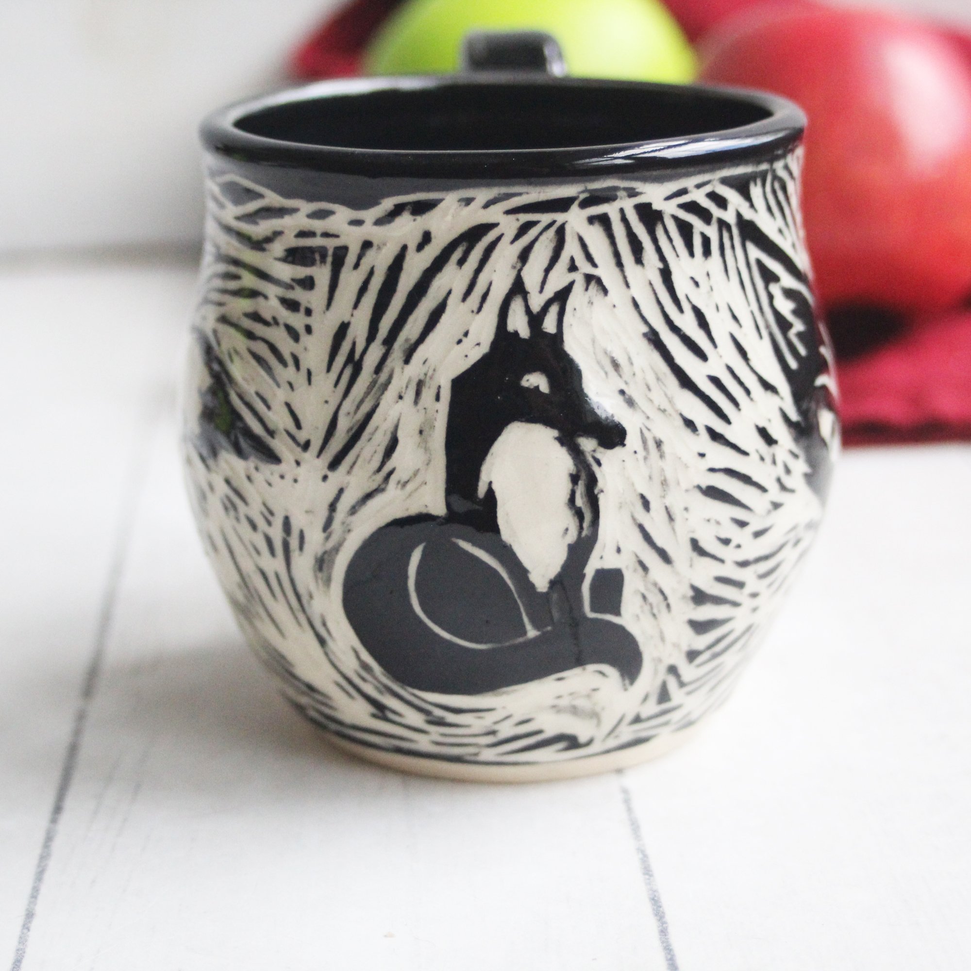 Handmade Fox Sgraffito Mug, 12 oz., Hand Carved Fox Design, Artful Coffee Cup Ready to Ship Made in