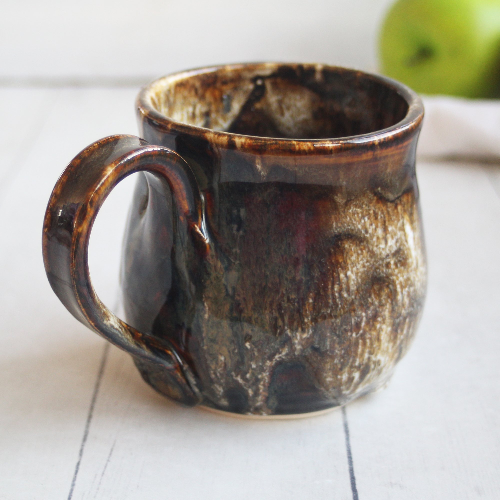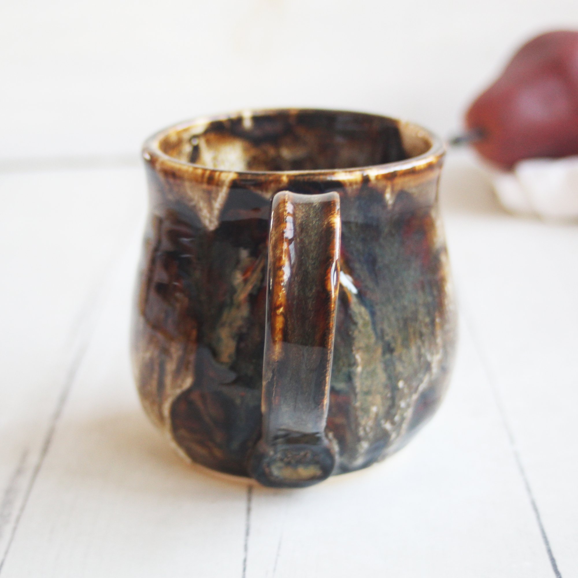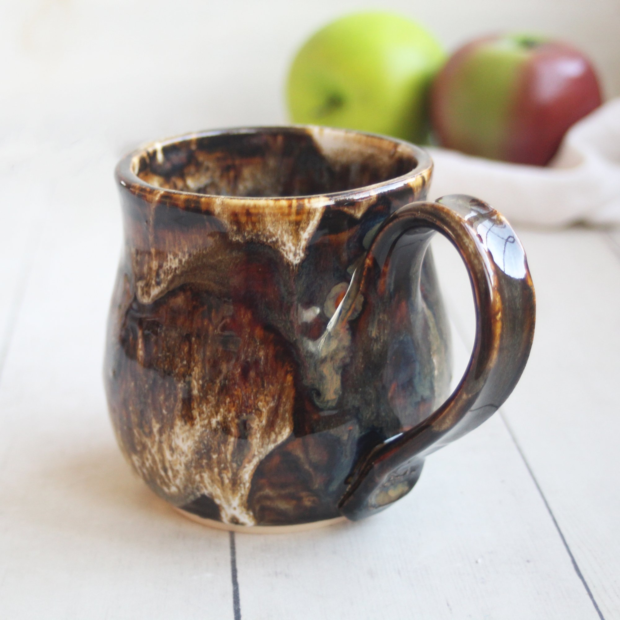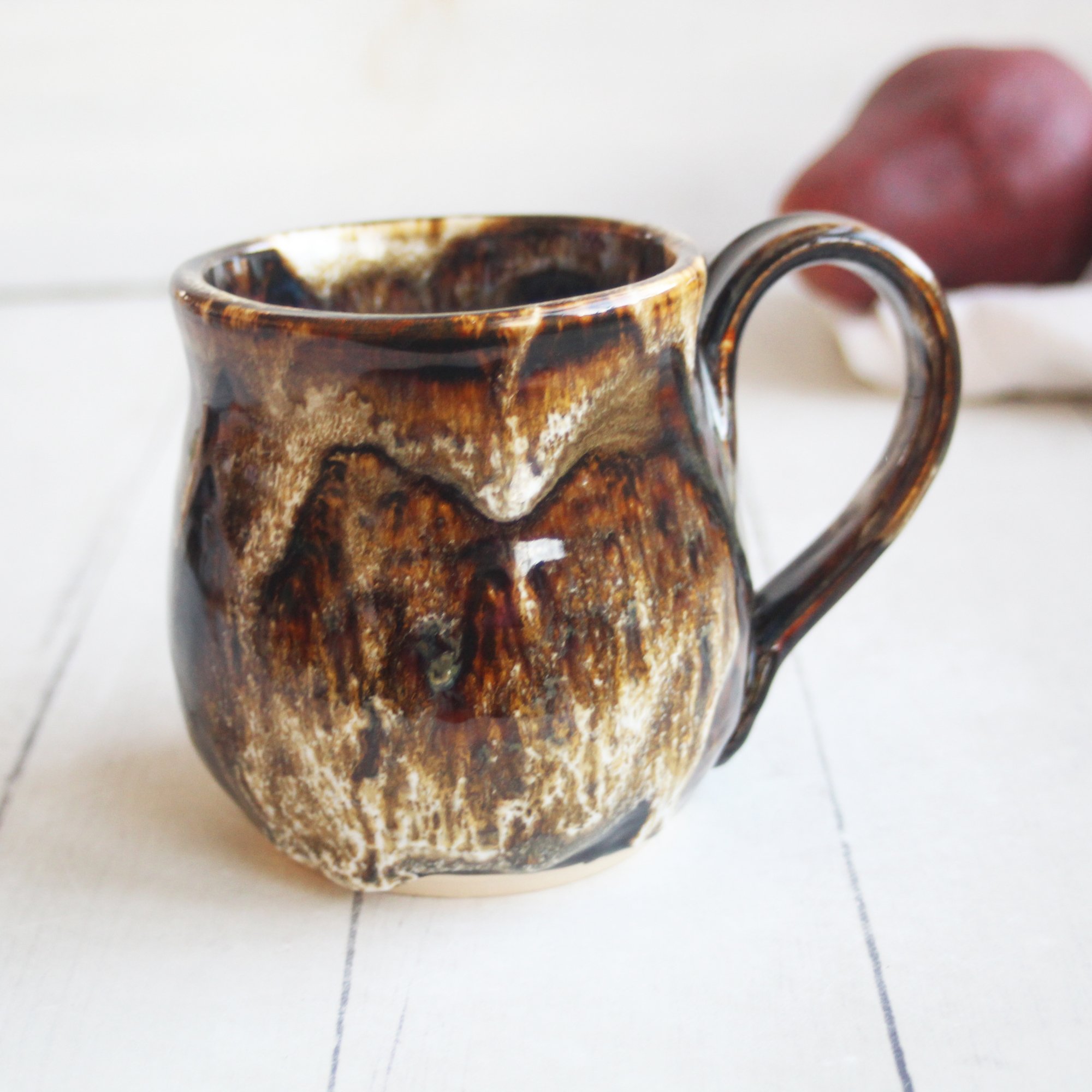 Handmade Mug with Dripping Earthy Brown and Melting Marshmallow Glaze, Made in USA