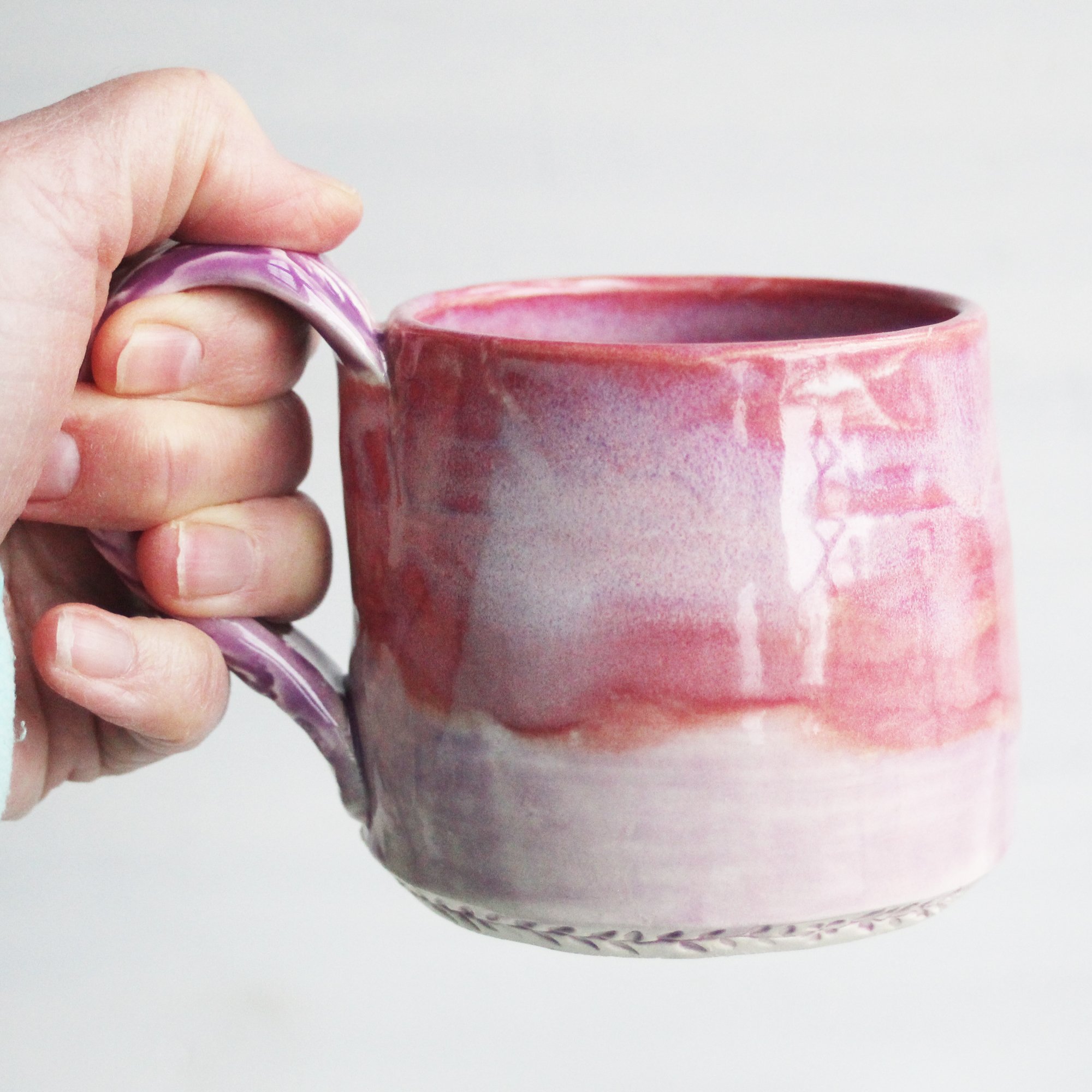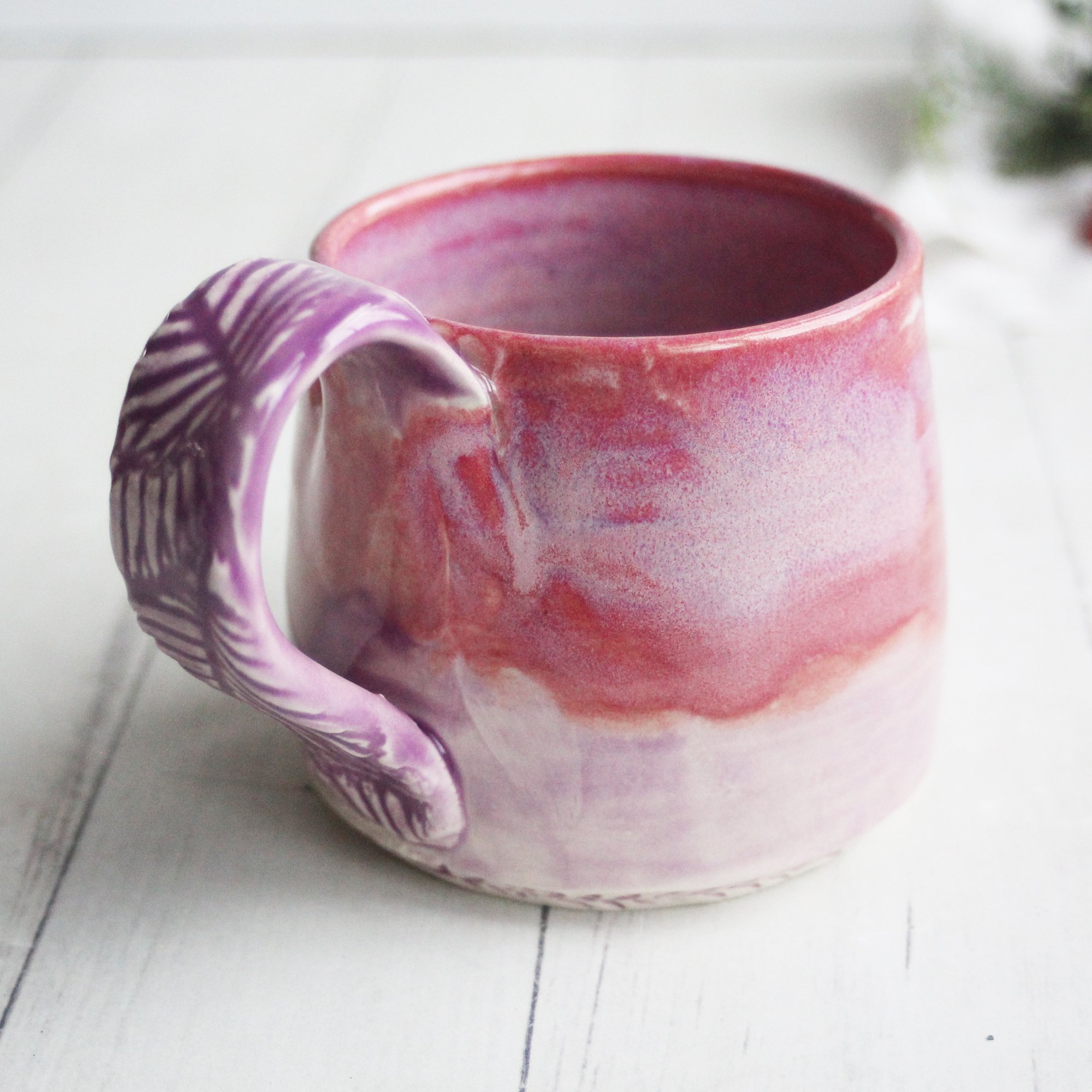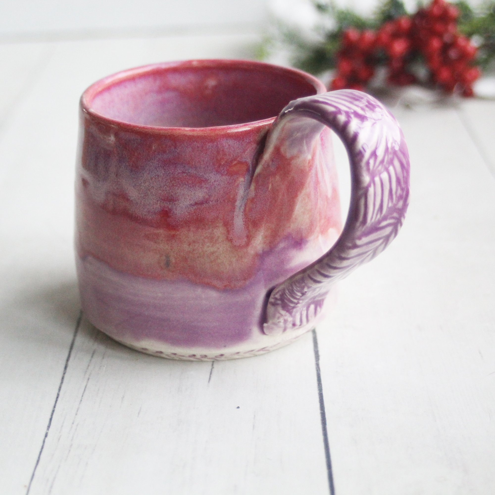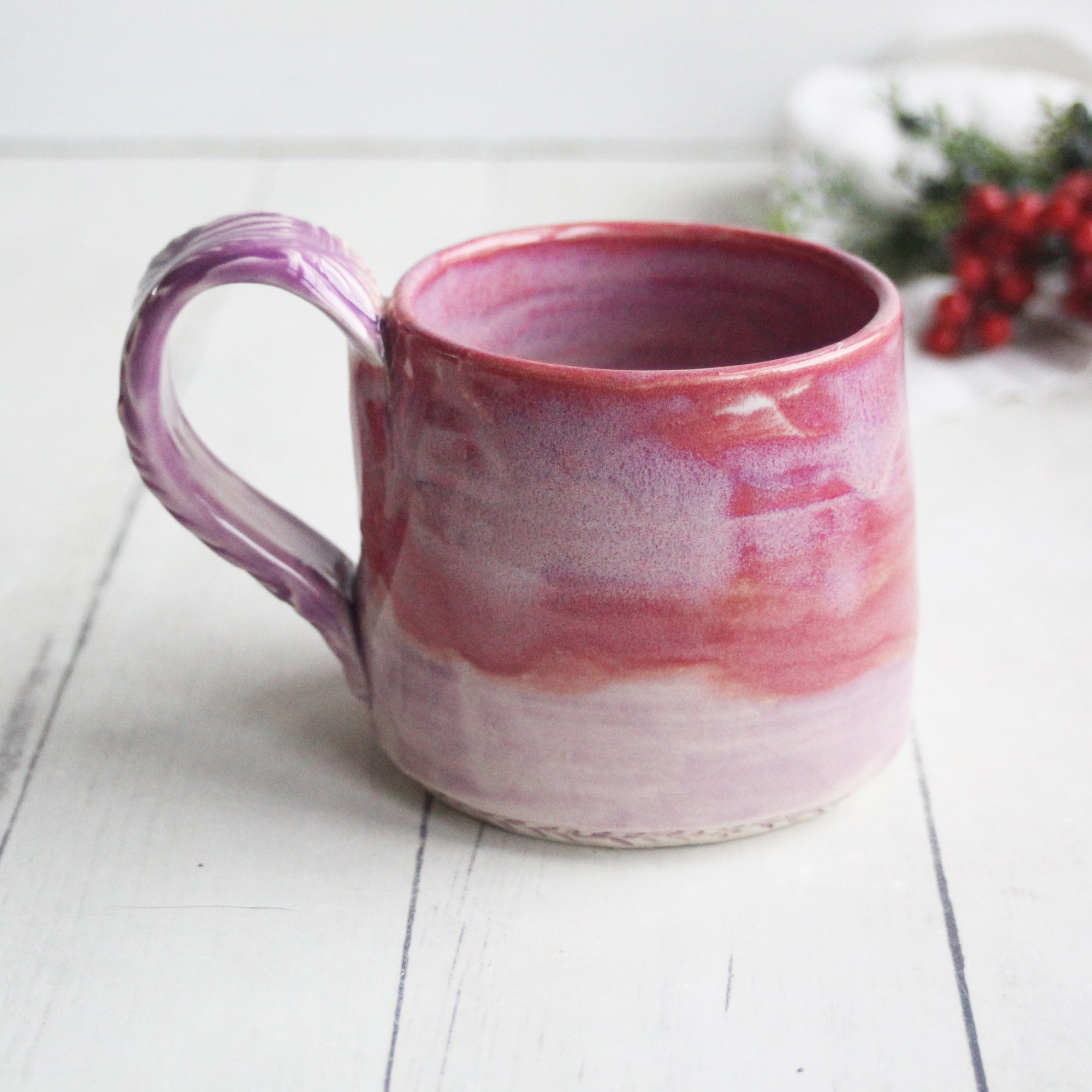 Small Handmade Pottery Mug in Shades of Pink and Purple Glazes, 10 Ounce, Made in USA