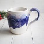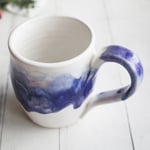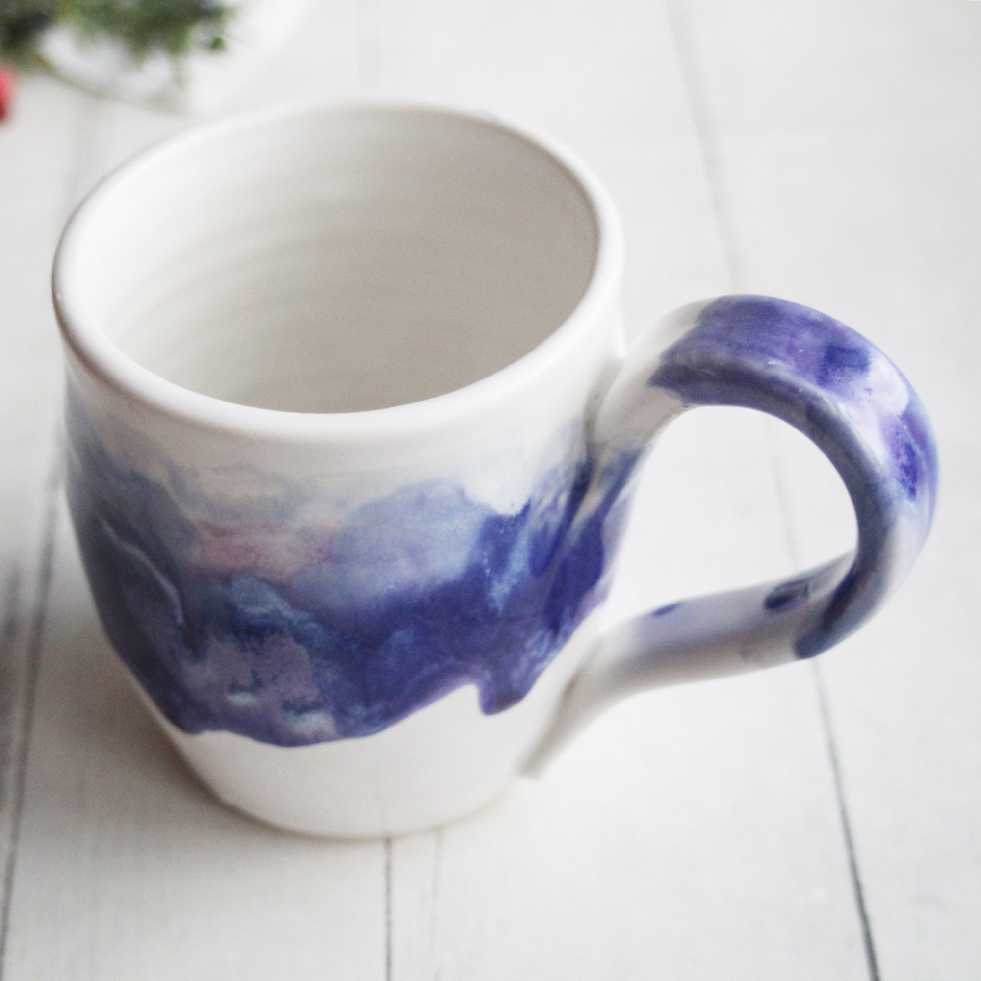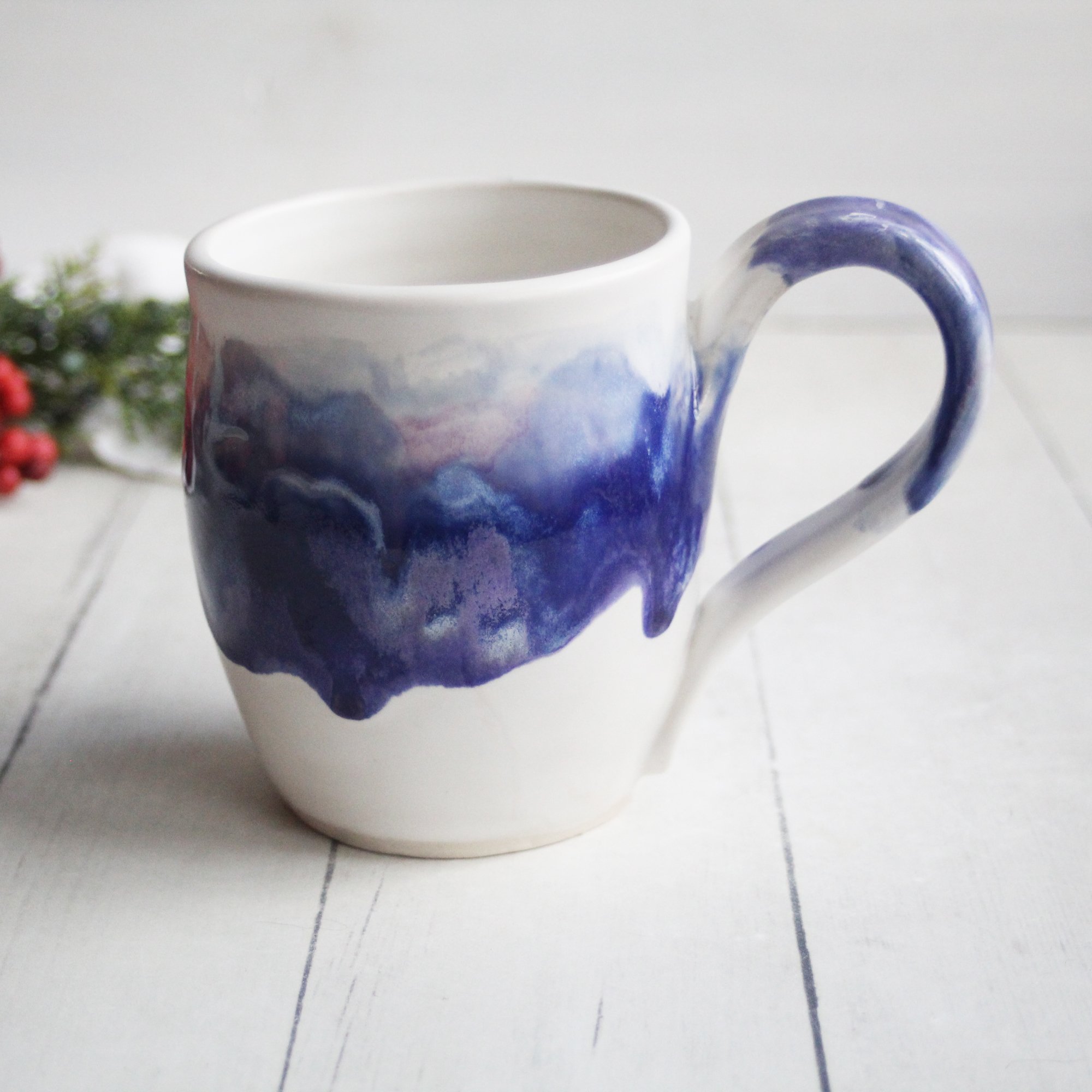 Handmade Pottery Mug in White and Purple Dripping Glaze, 14 oz., Made in USA