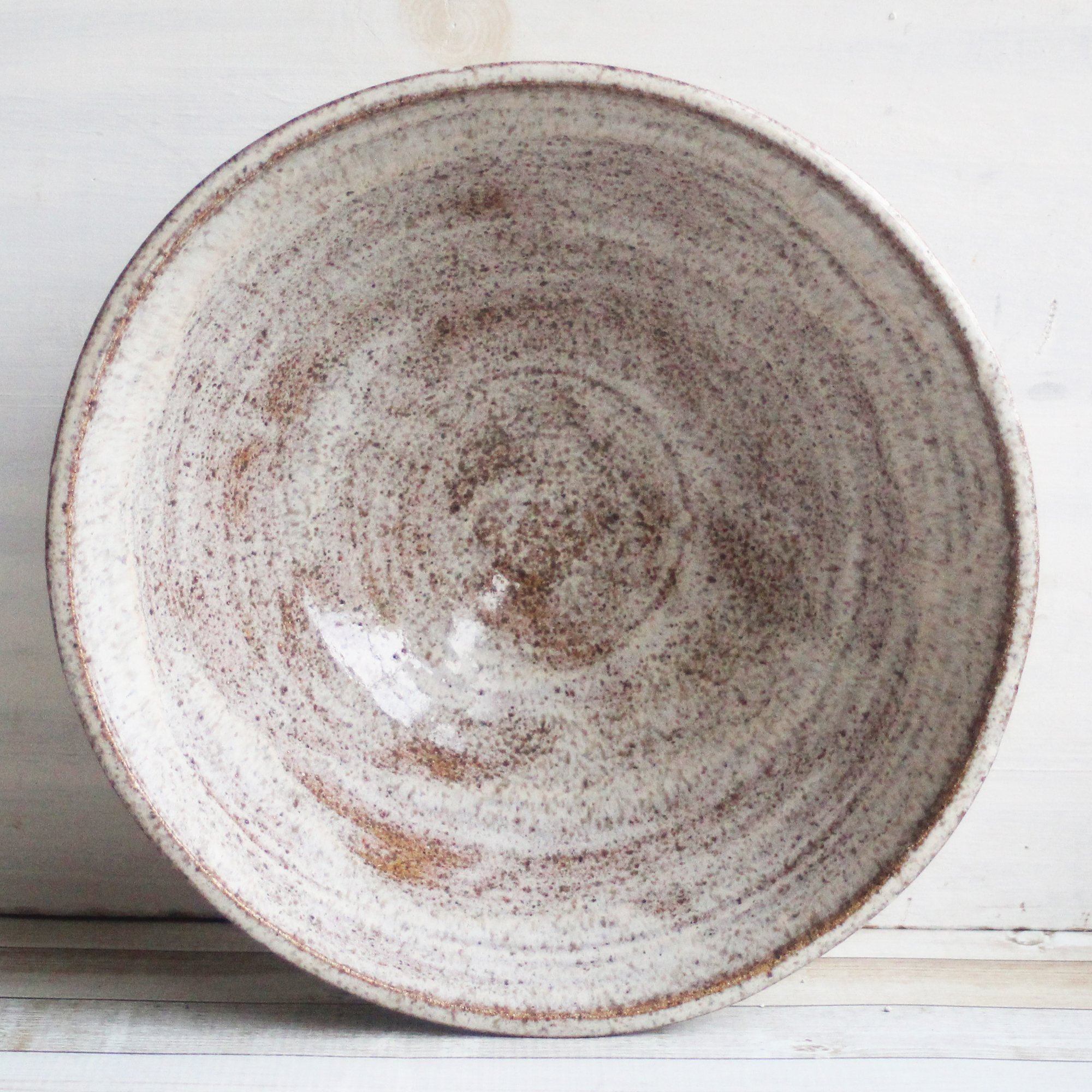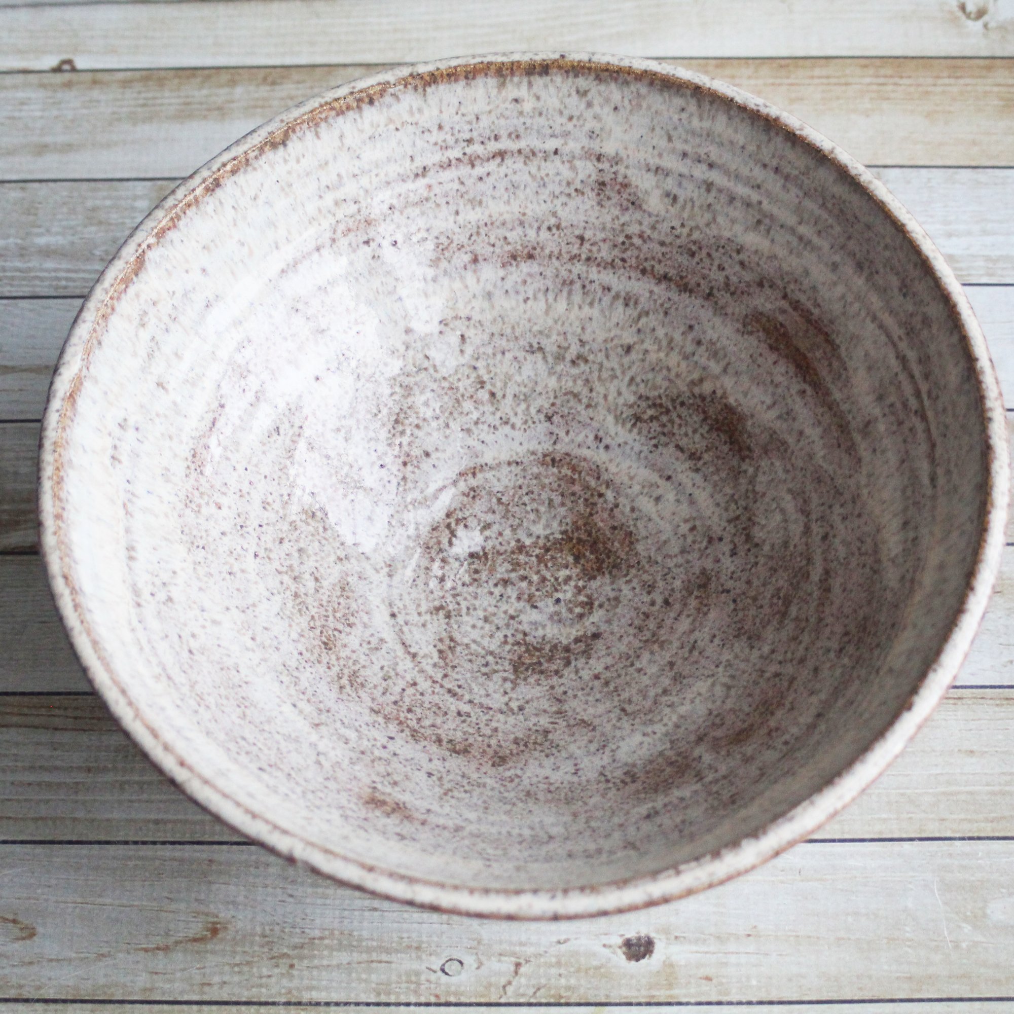 New Gorgeous Hand Carved Large Rustic Serving Bowl in Dripping White and Speckled Brown, Made in USA