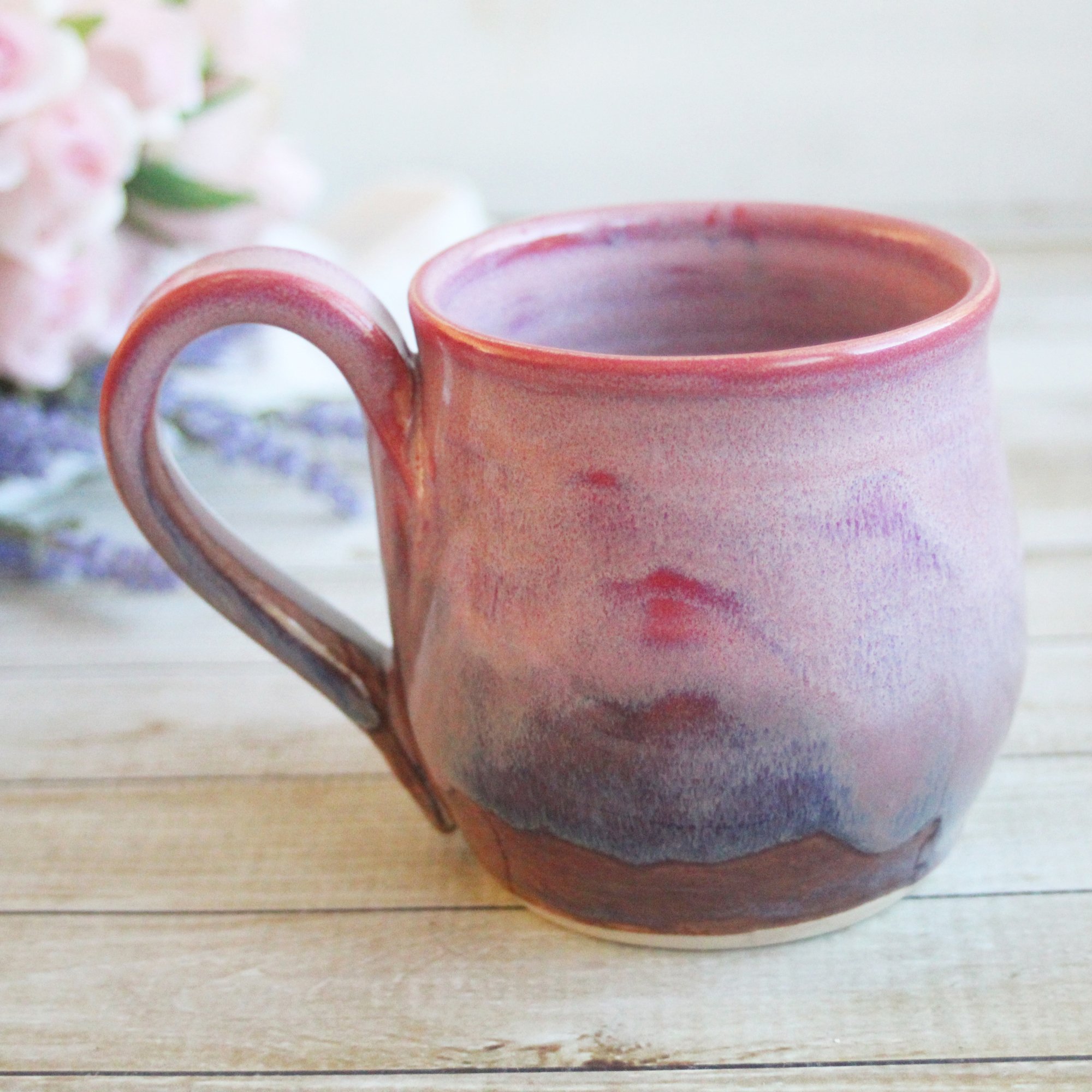 Pink and Purple Mug with Dripping Glazes, Handmade Pottery Coffee Cup, Made in USA