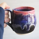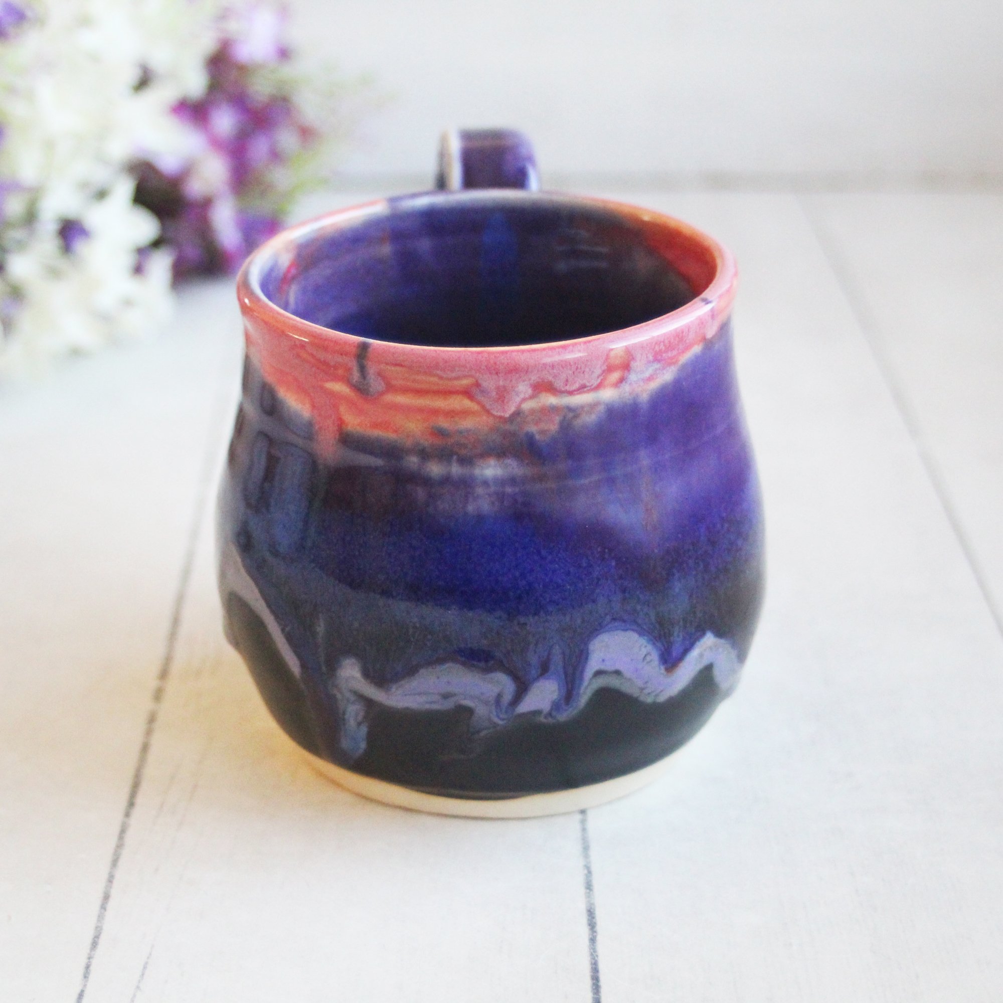 Pink, Purple and Black Glazed Pottery Mug, Wheel Thrown Pottery, Made in USA