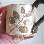 Pressed Fairy Lilac Leaves Nature Mug, Rustic Handcrafted Pottery, Made in USA