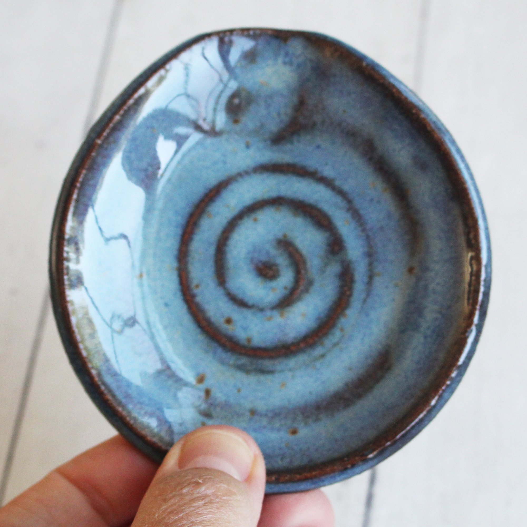 Rustic Small Swirly Blue Spoon Rest, Handcrafted Pottery Made in USA