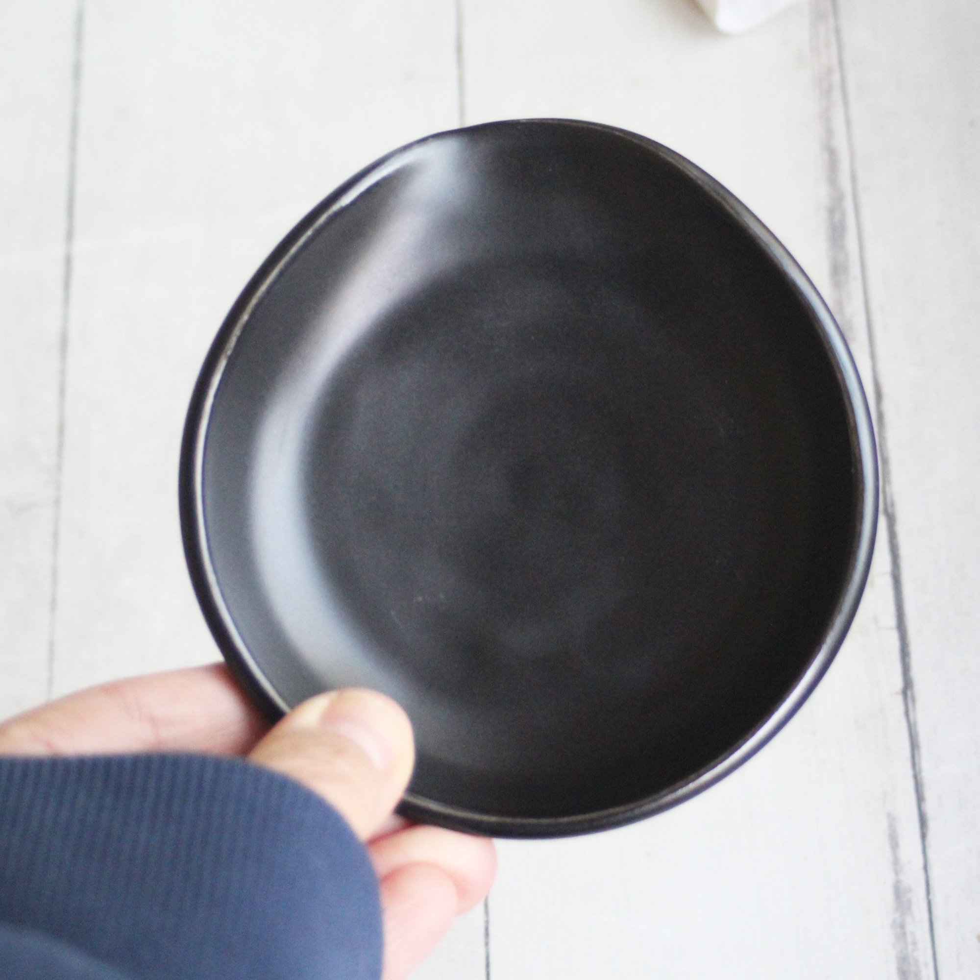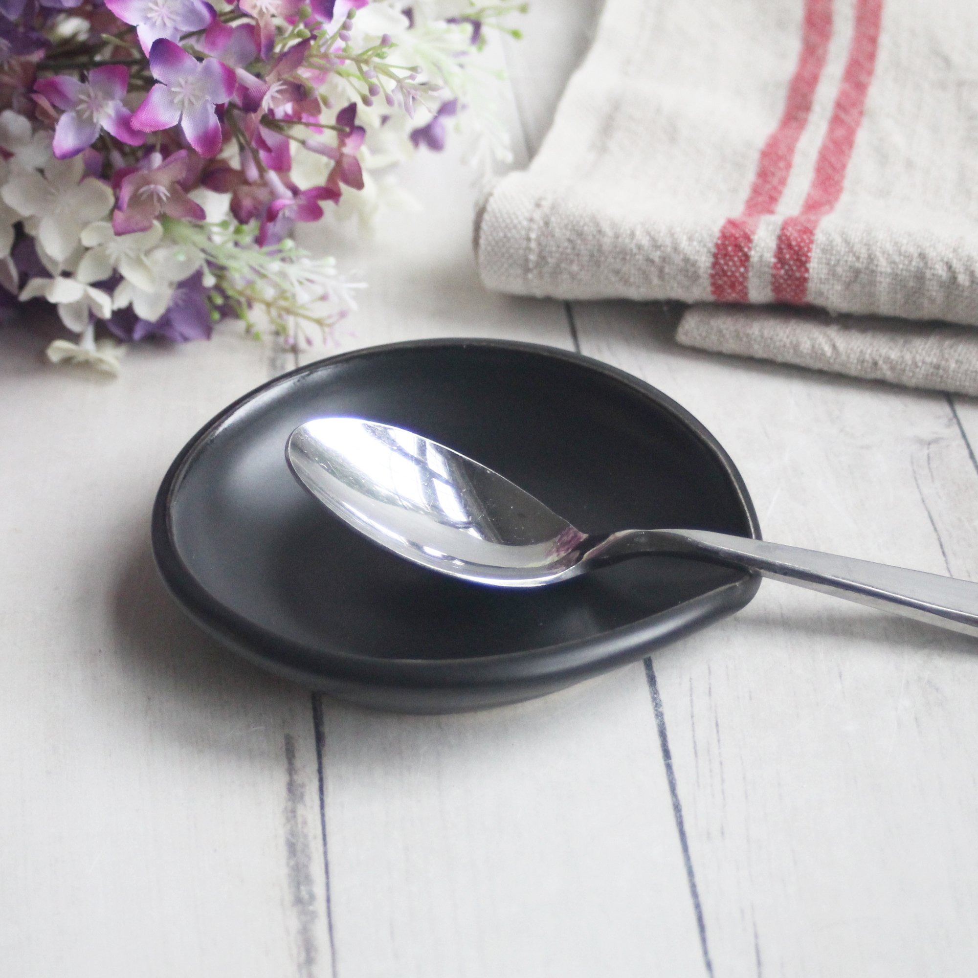 Medium Satin Black Spoon Rest, Handmade Ceramic Coffee Spoon Dish, Made in USA