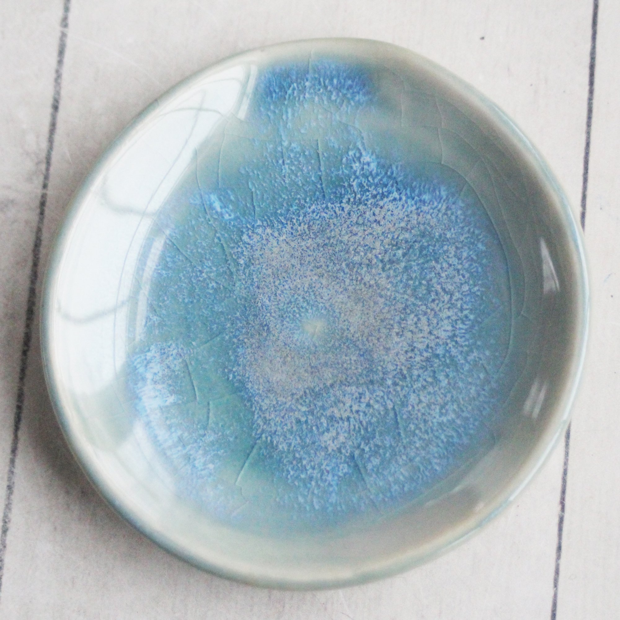 Small Spoon Rest in Sea Glass Blue Glaze, Teaspoon Dish for Coffee Station, Made in USA