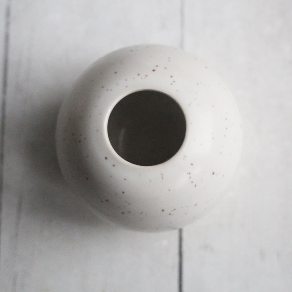 Small White Speckled Vase, Round Petite Vase, Made in USA
