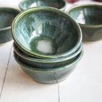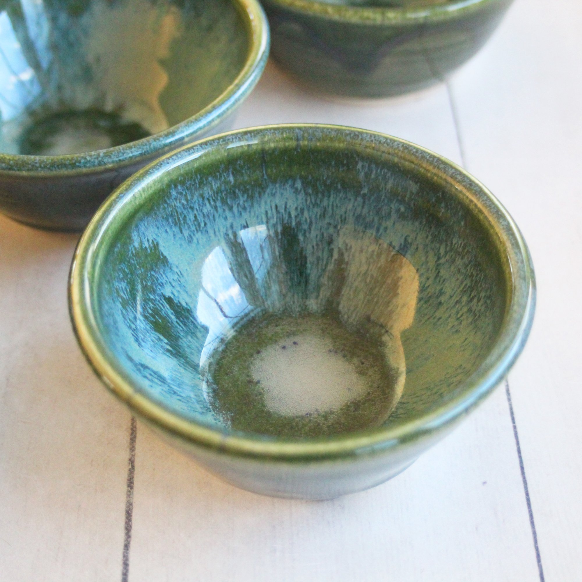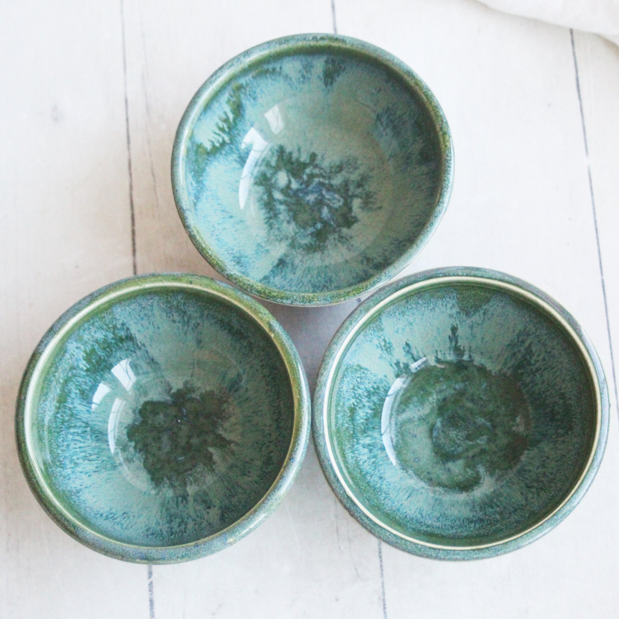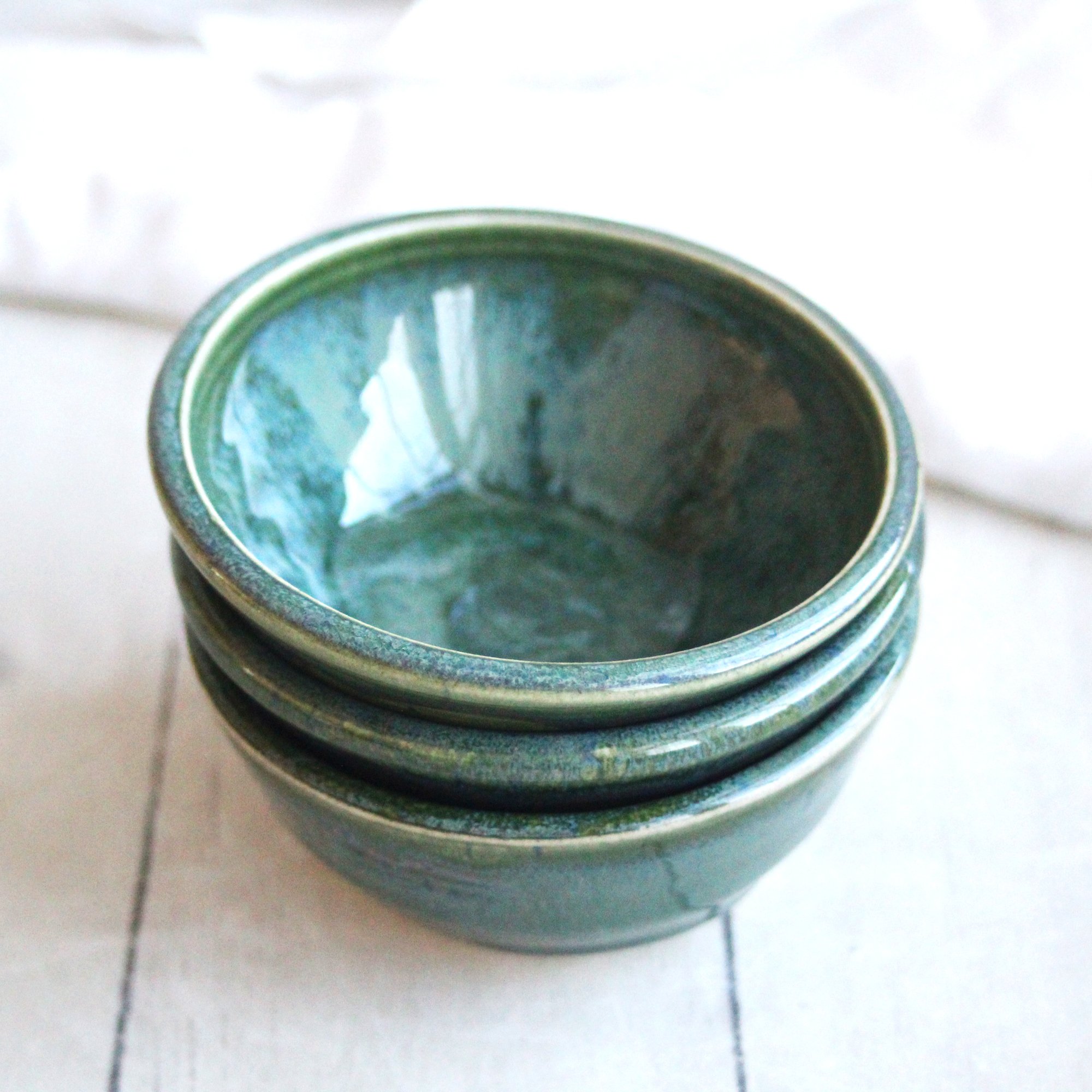 Set of Three Small Ceramic Bowls, Handcrafted Stoneware Prep Bowls, Green Pottery Made in USA