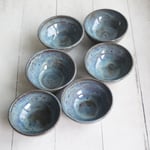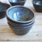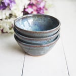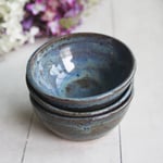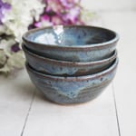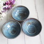 Three Small Rustic Blue Ceramic Pottery Bowls, Kitchen Prep Handcrafted Made in USA